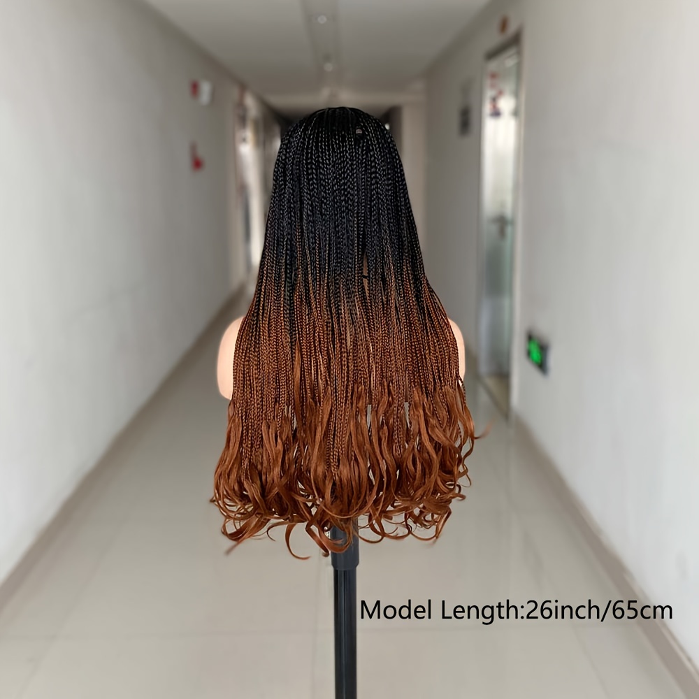 Braided Wigs Synthetic Box Braid Wig For Women Wavy End Long Ombre Grey Brown Blonde Color 26 Inch 3X Twist Braiding Hair Wig Machine Wig - 1B / 26inch