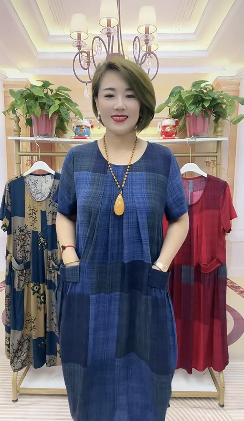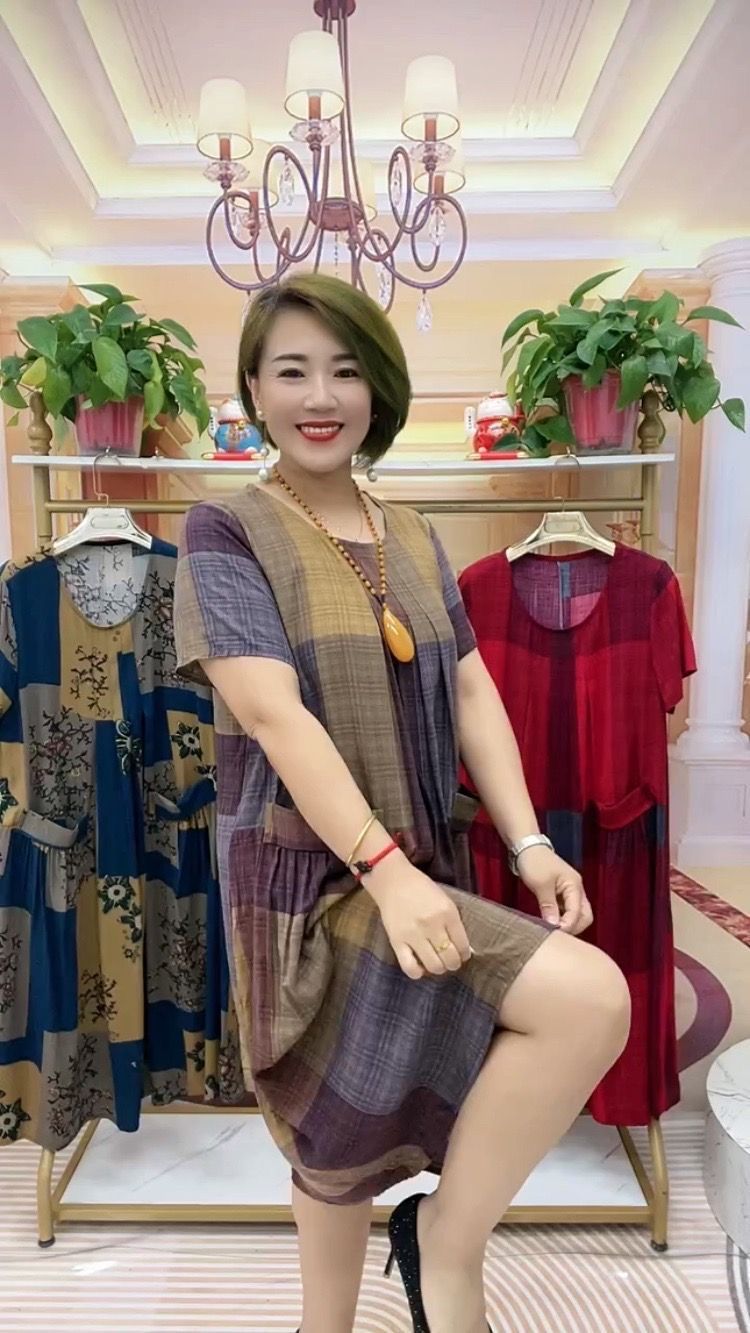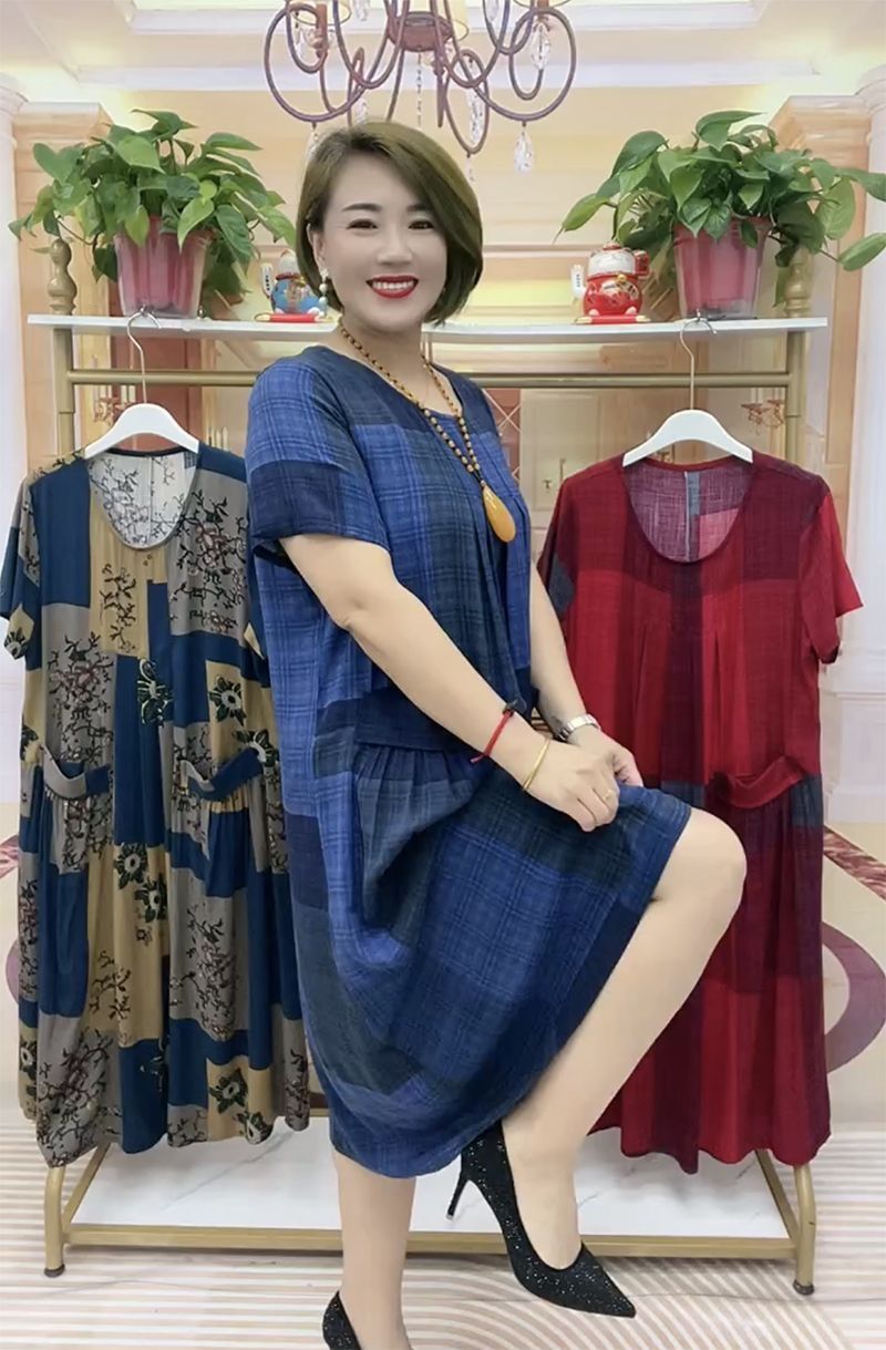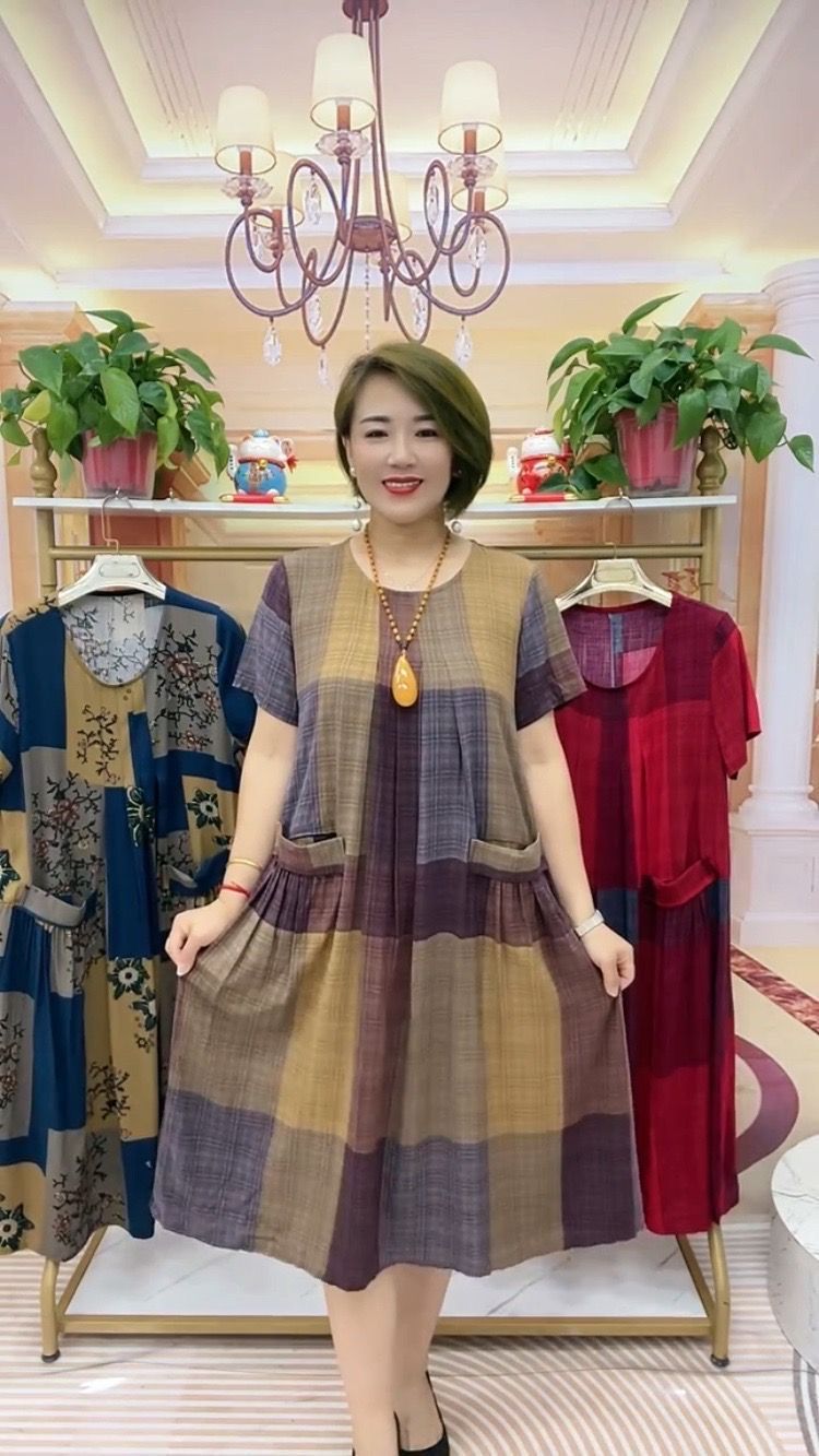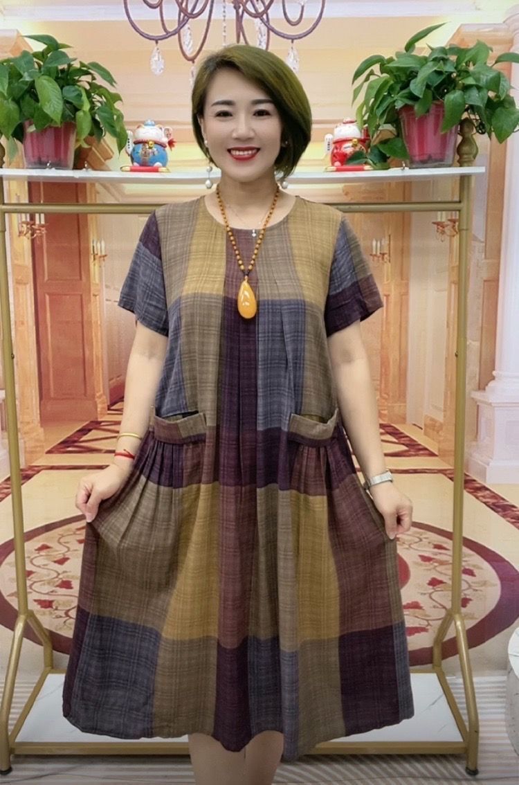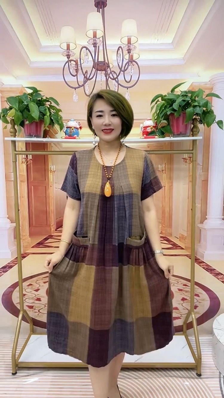 Checkered Skirt Large Edition Summer Women's Dress Women's Mid-length Large Skirt - 921 Brown / 2XL