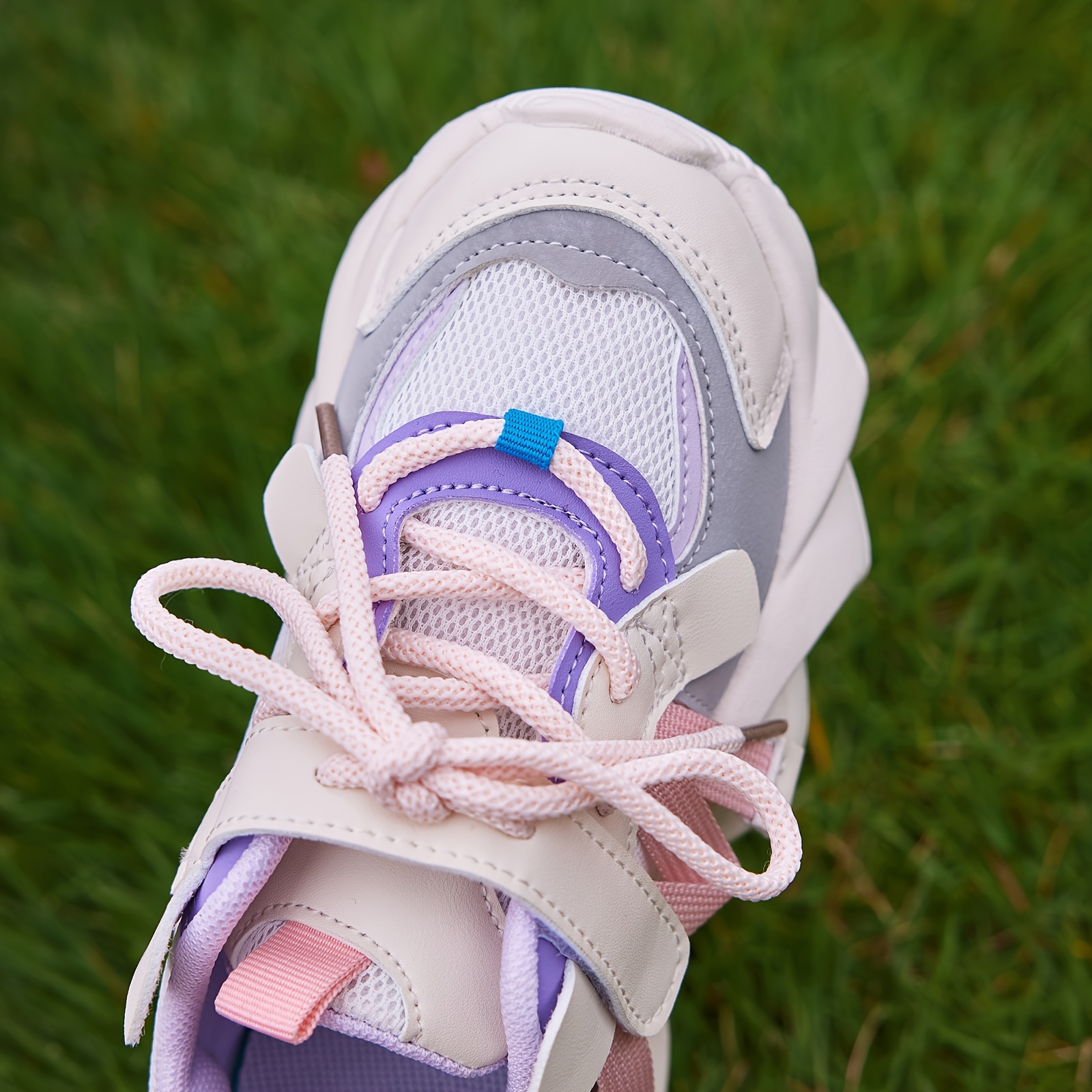 Kids' Fashion Sneakers, Breathable Lightweight Non-Slip Athletic Running Shoes, Solid Color & Stripes, Low Top Fabric Upper with PU Inner, Rubber Sole, with Adjustable Strap Closure, for Boys & Girls, All-Season Round Toe Spo - Purple / US 9 Toddler