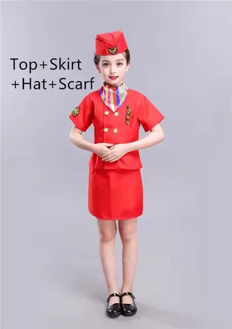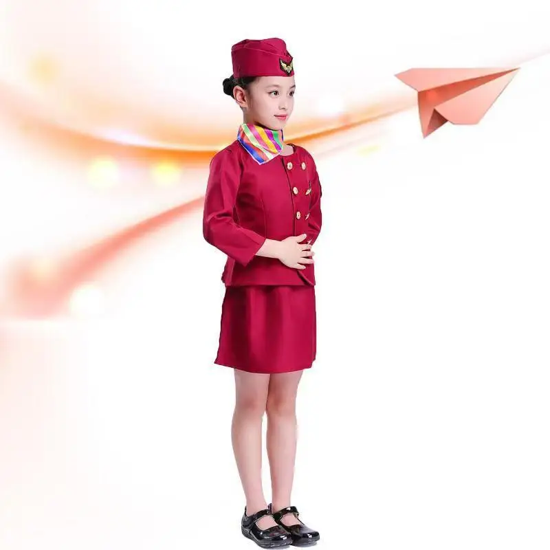 Halloween Costumes for Kids Aviation Uniforms Cosplay Pilot Flight Attendant Aircraft Boys Girls Carnival Role Play Clothing - Blue / Height 110