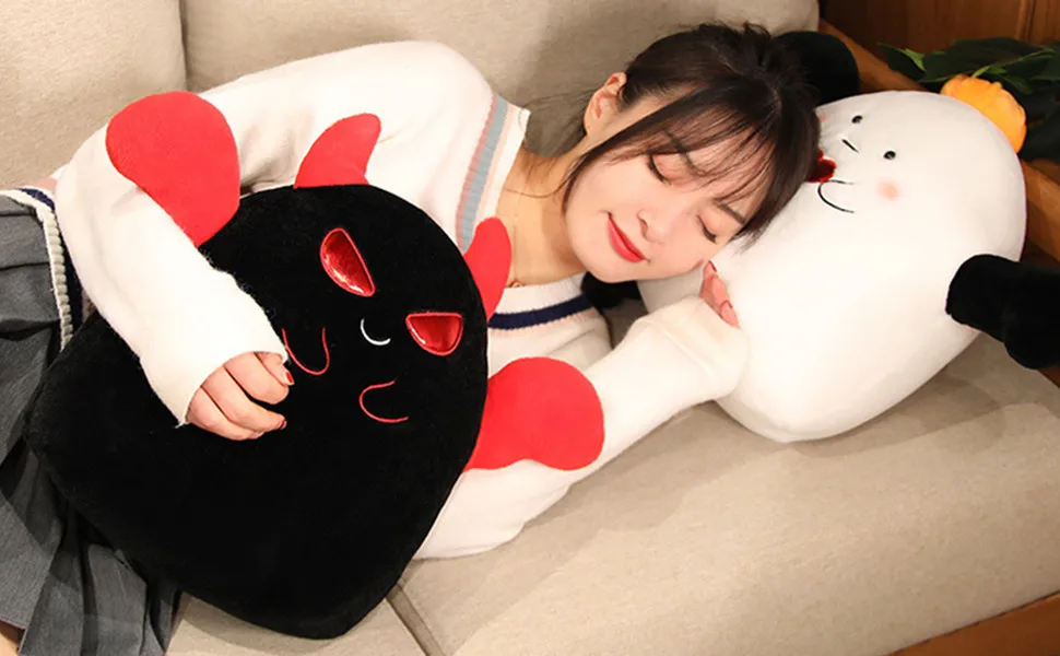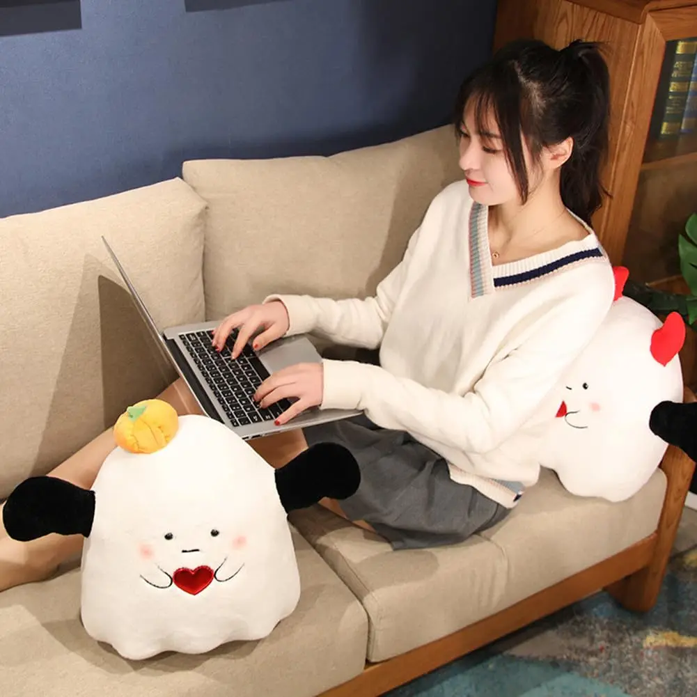 Super Soft Kawaii Funny Angry Bat Demon Halloween Decor Squishy Plushie Pillow Stuffed Ghost Plush Toy Doll for Kids - White / 38cm/15inch