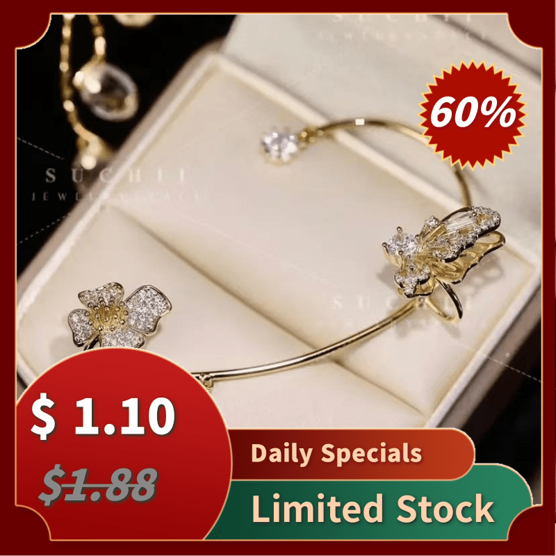 FFOrder Butterfly Tassel Ear Hooks - gold-Left ear