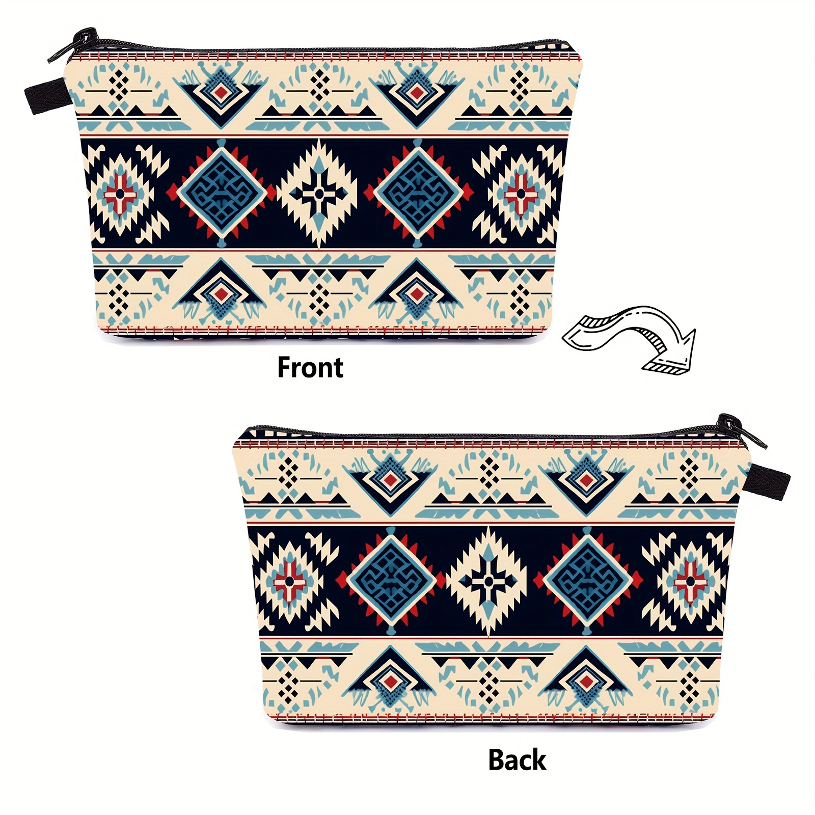 1 Piece Makeup Bag For Women, Aztec Travel Toiletry Pouch With Zipper Travel Packing Bag Small Cosmetic Bags Accessory Organizer For Women - Hzb1438 (pattern Position Random)