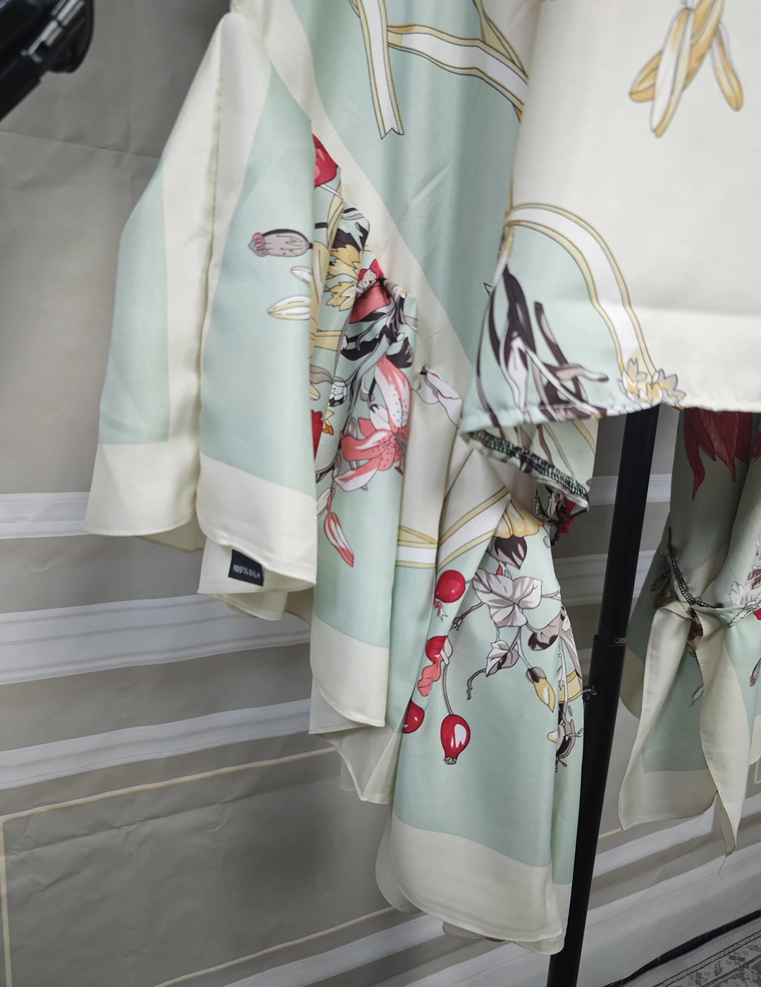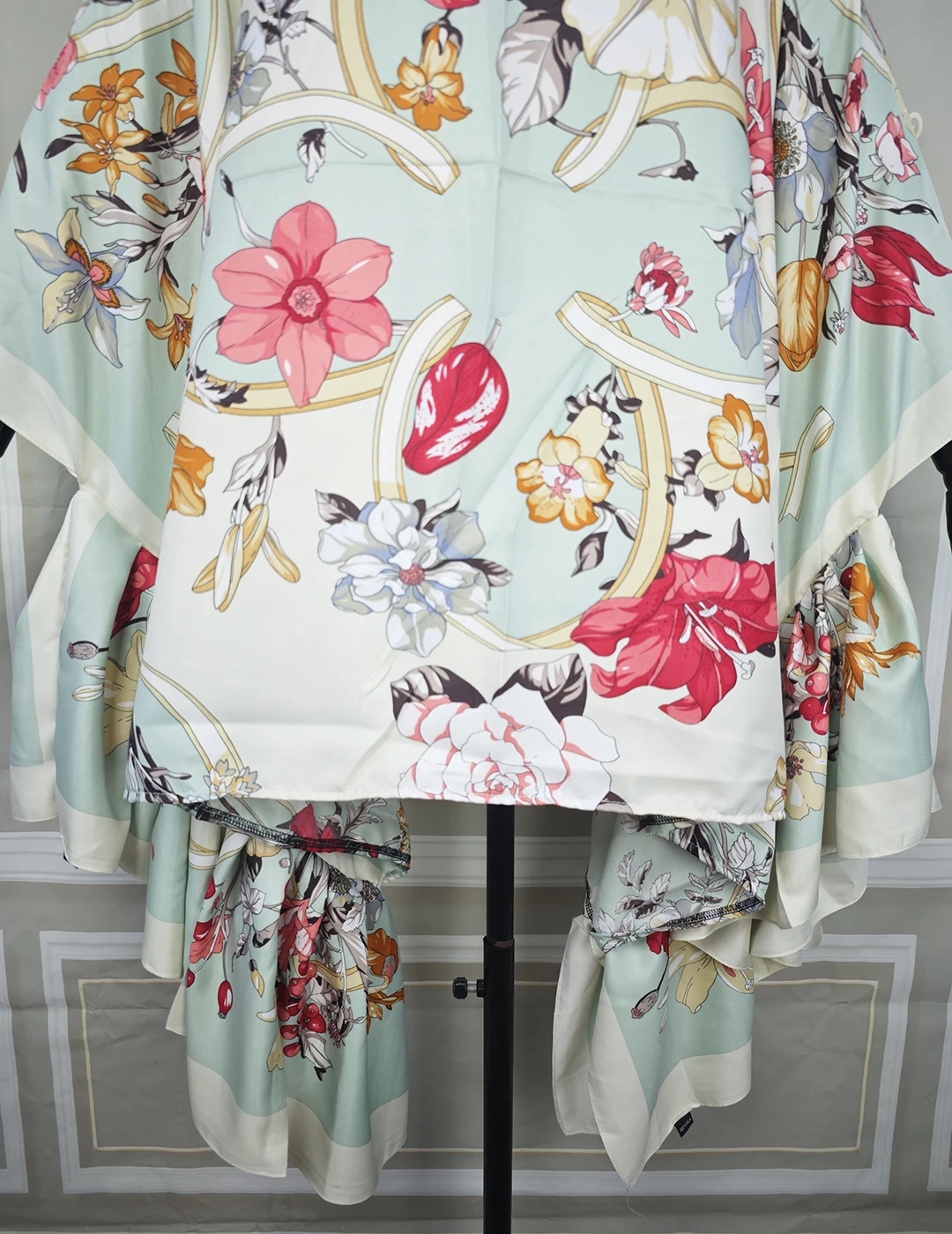 2025 Summer Fashion Beach Wear Twill Silk Loose Ruffle Sleeve Blouse For Women Elegant Lady Evening Party Soft Floral Tops - color 1 / One Size