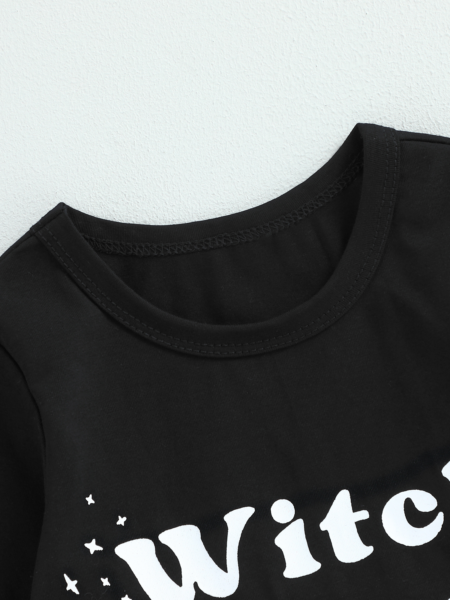 Baby Girls Halloween Clothes Letter Print Long Sleeve Tops and Pumpkin Print Flared Pants Headband Set Fall Outfits 0 6 12 18 24 Months 2-3 Years Old Kid - White / 1-2Y