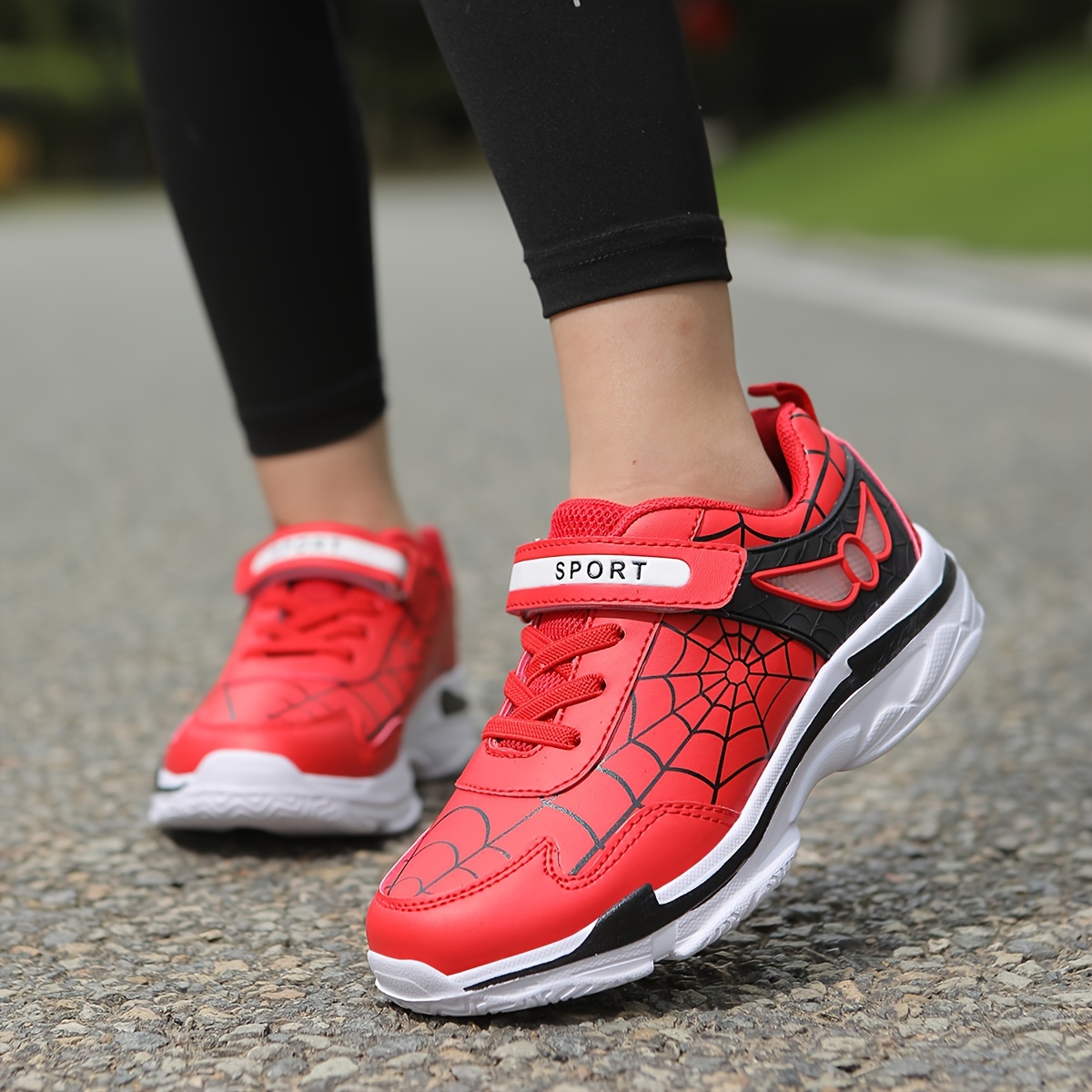Kids Fashion Sneakers Breathable Lightweight Sport Casual Shoes with Cartoon Spider Web Design, Closure, Low Top PU and Fabric for Boys and Girls – Versatile All-Season Footwear for Outdoor Activities - Black / US 8 Toddler