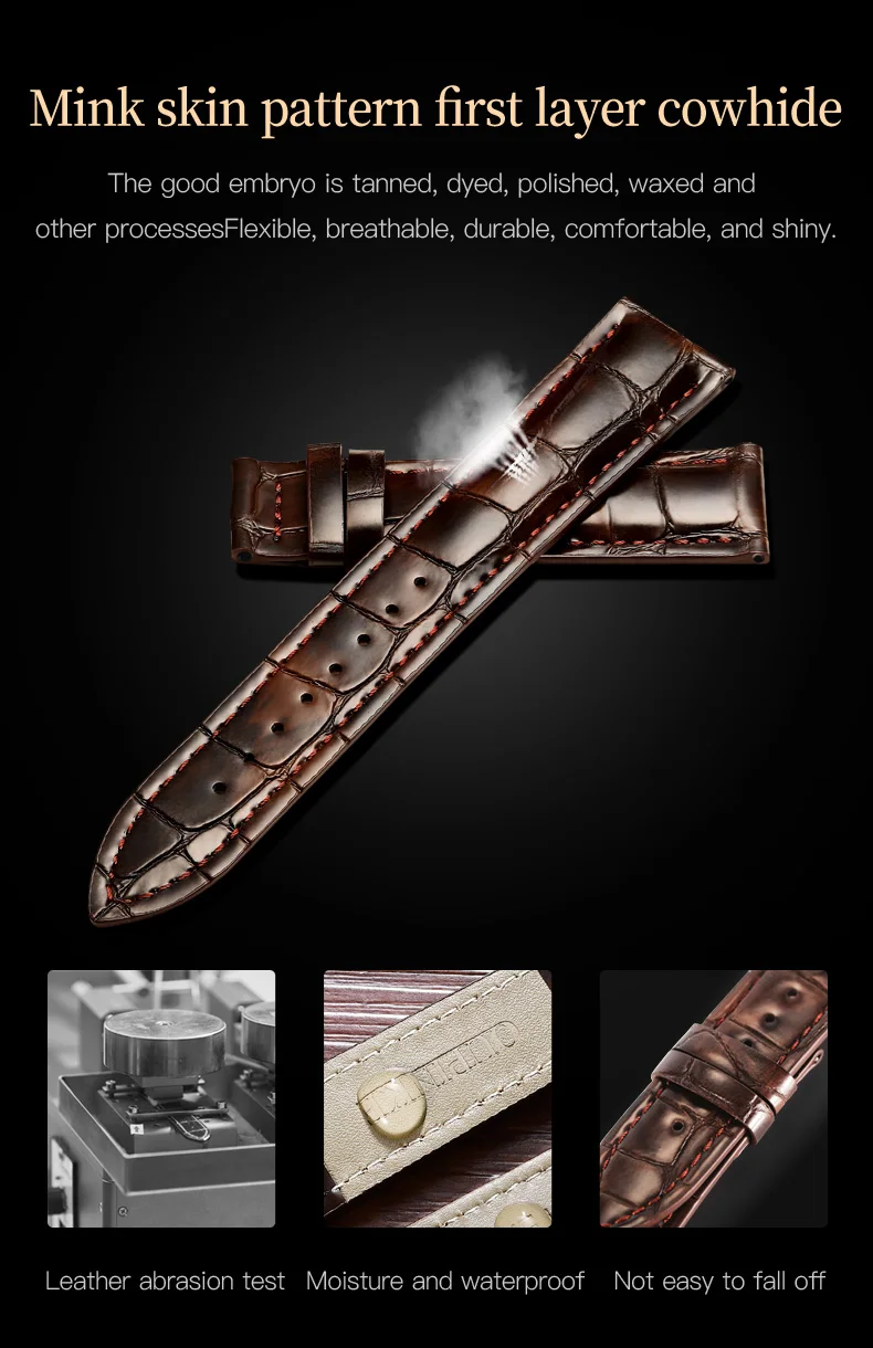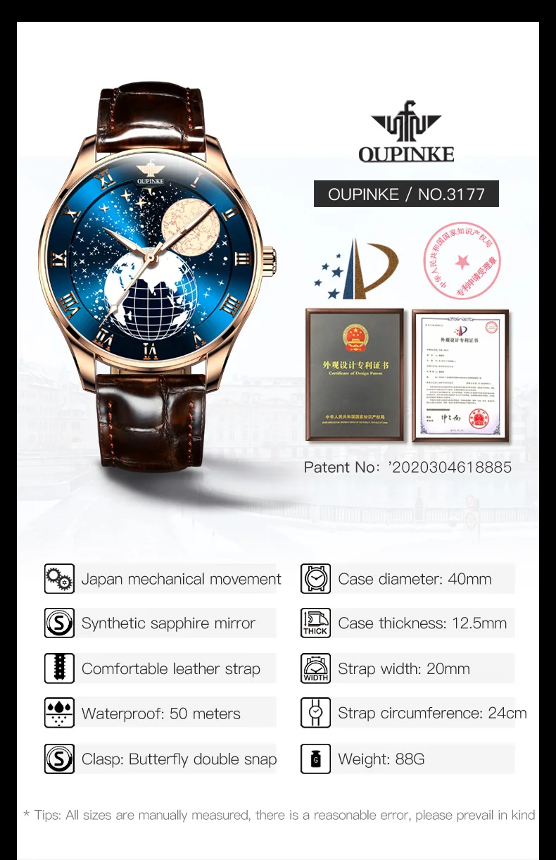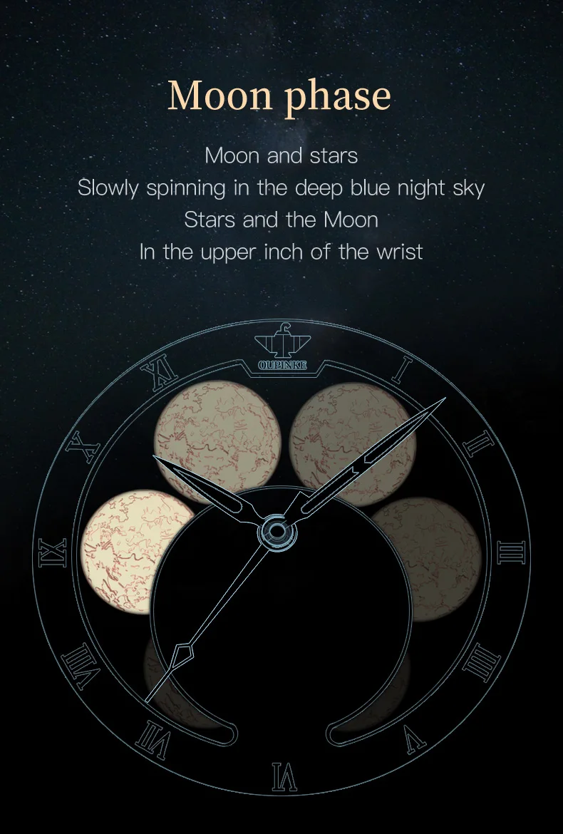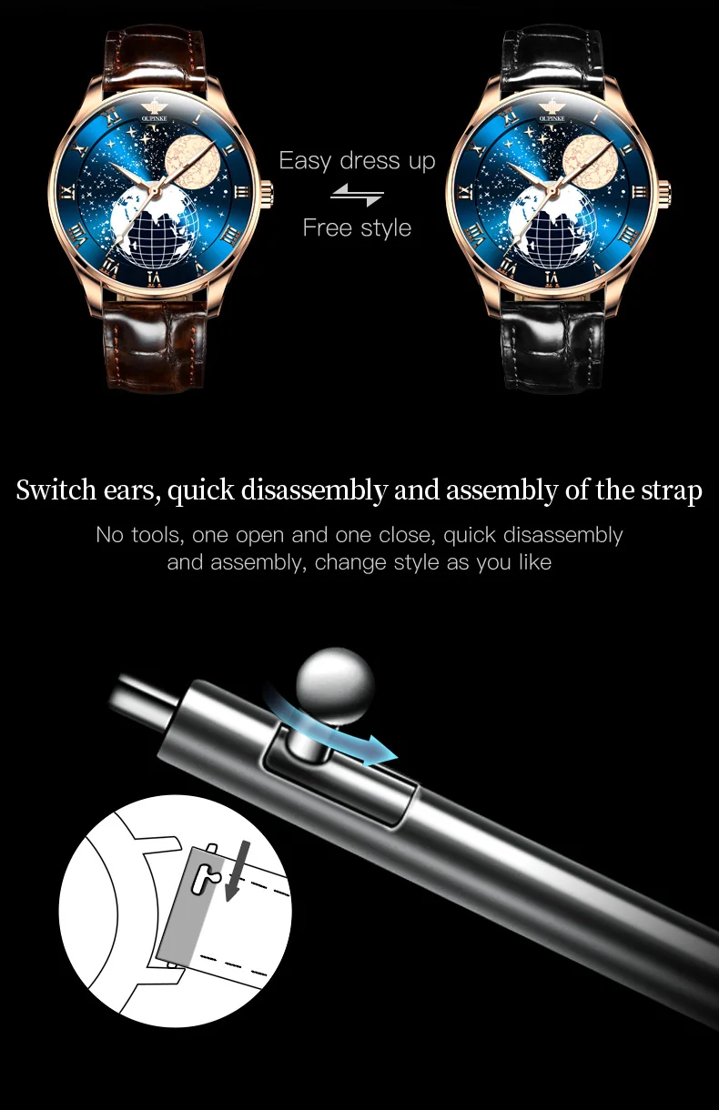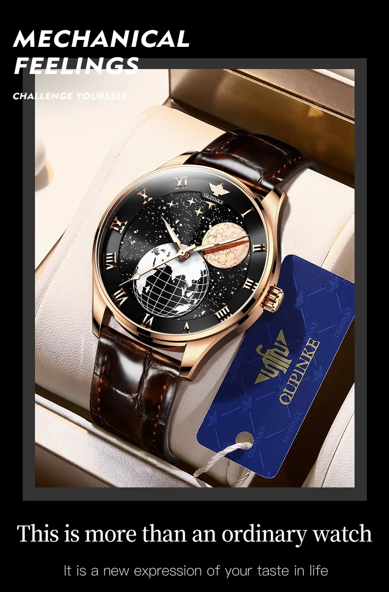 Oupinke 3177 OEM Starry Sky Moon Phase Sapphire Crystal Glass Automatic Leather Business Male Mechanical Mens Wrist Watch - Black / Mechanical watch
