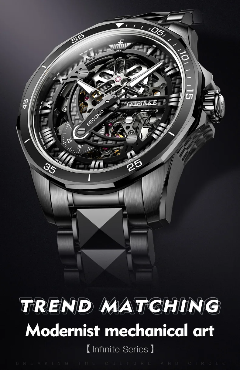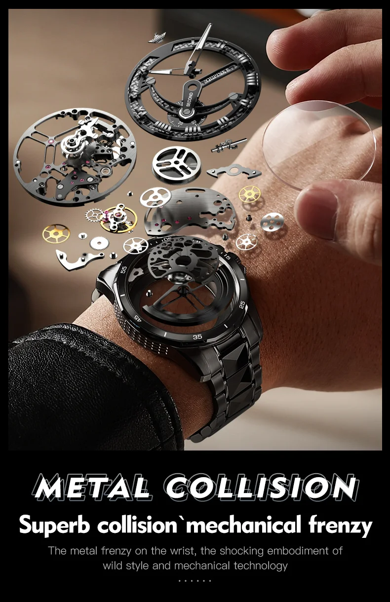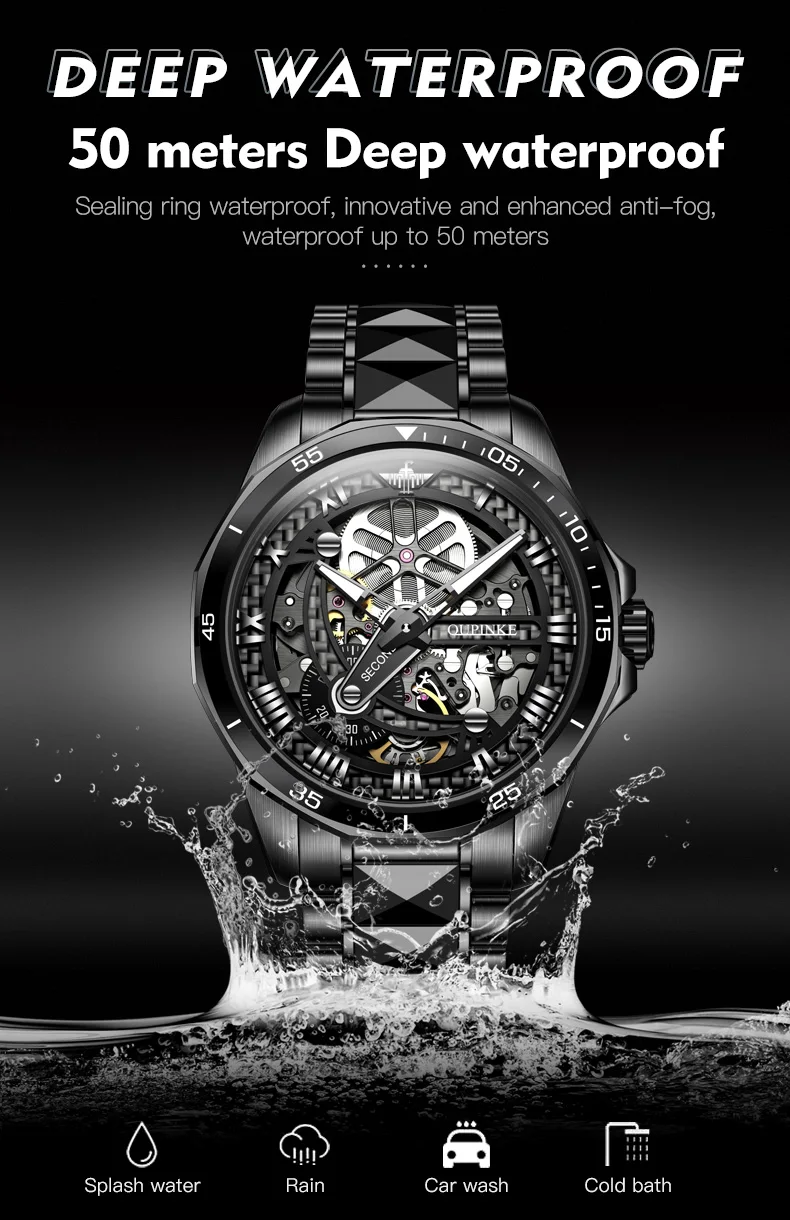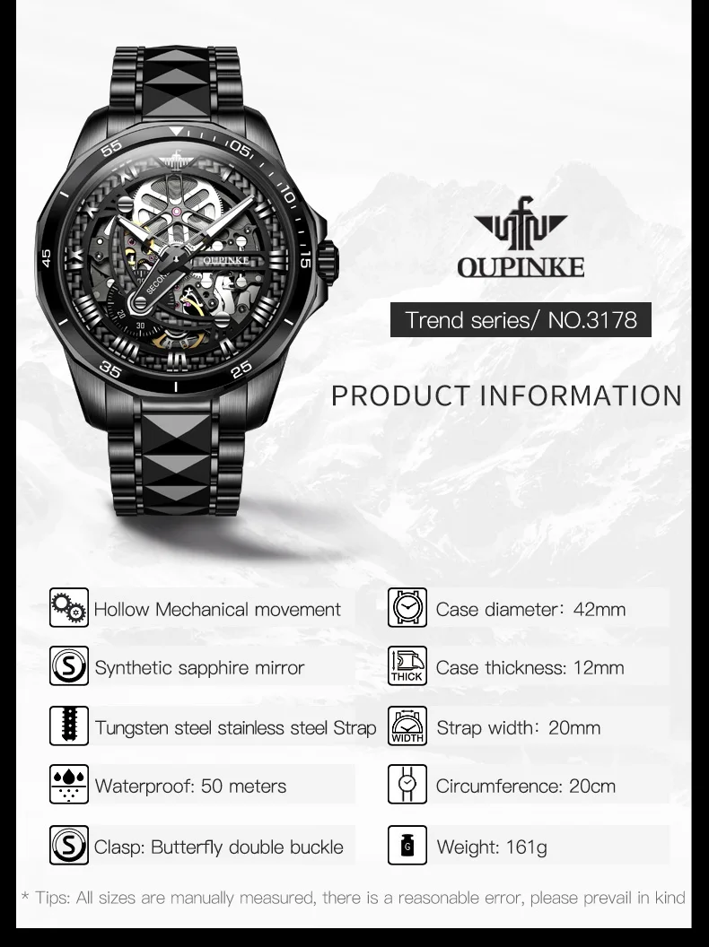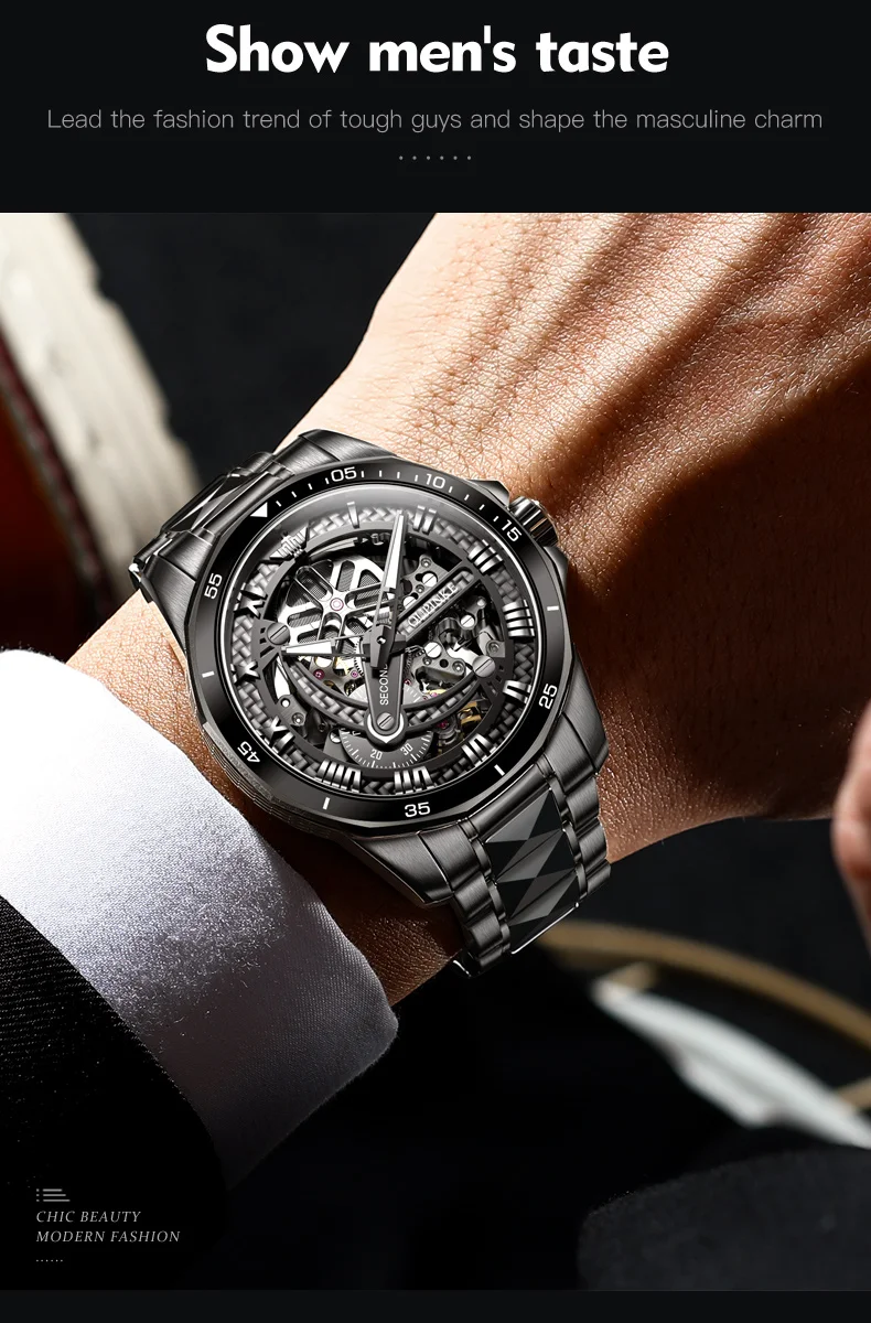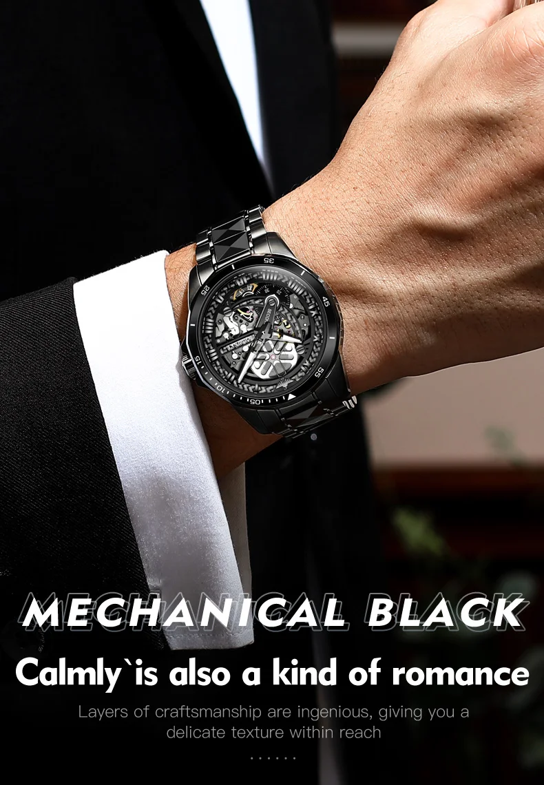 Oupinke 3178 New Design Relojes Factory Popular Luxury Men Mechanical Automatic Stainless Steel Wrist Digital Mens Wrist Watch - Black / Mechanical watch