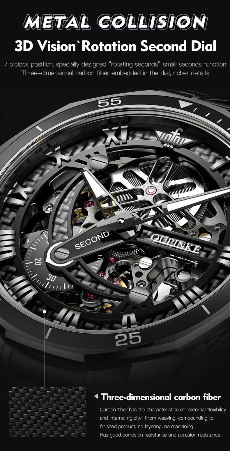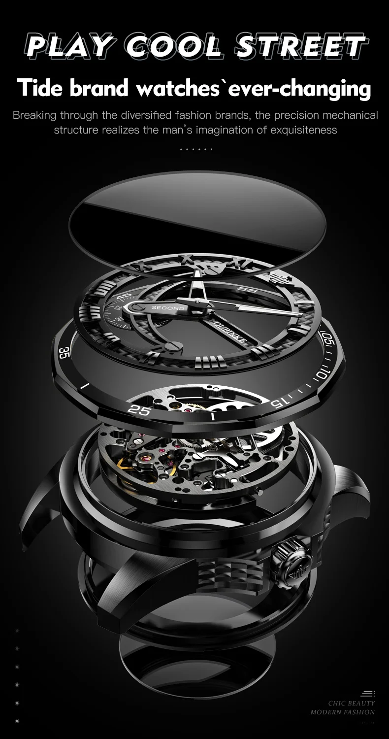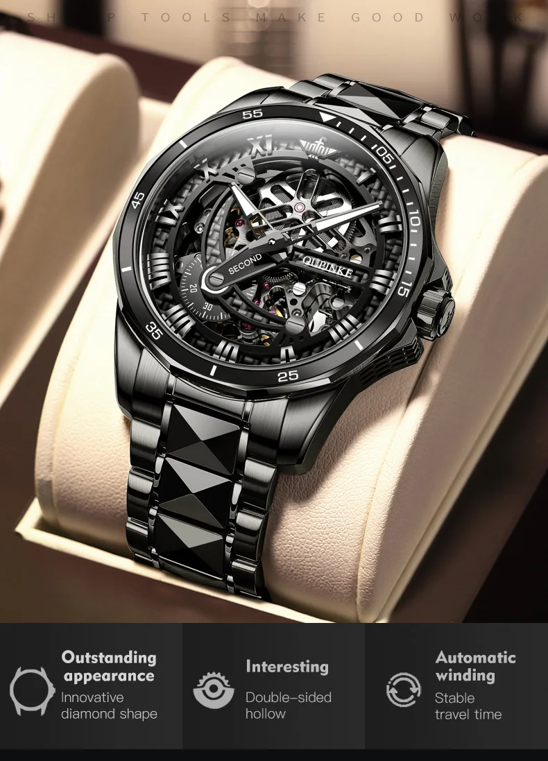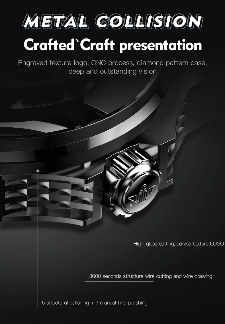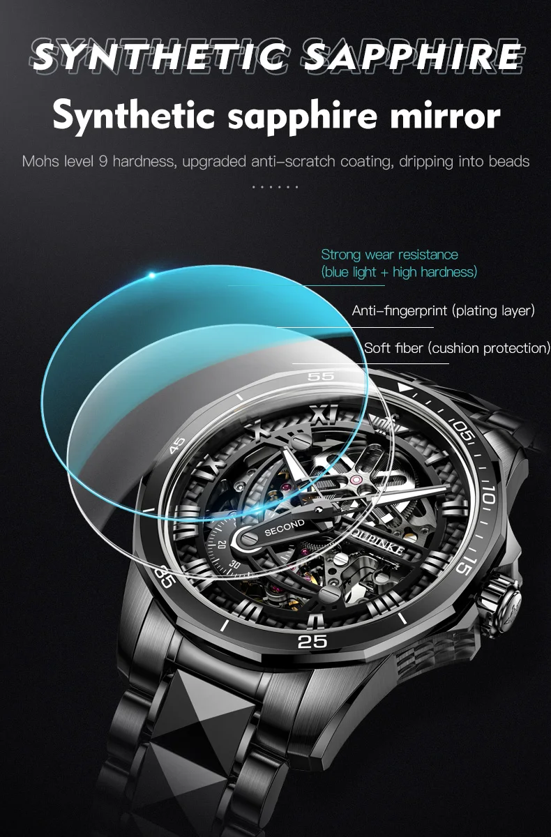 Oupinke 3178 New Design Relojes Factory Popular Luxury Men Mechanical Automatic Stainless Steel Wrist Digital Mens Wrist Watch - Black / Mechanical watch