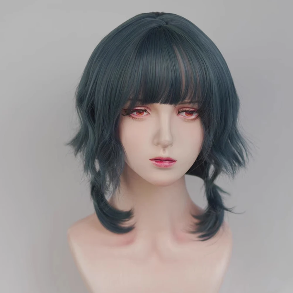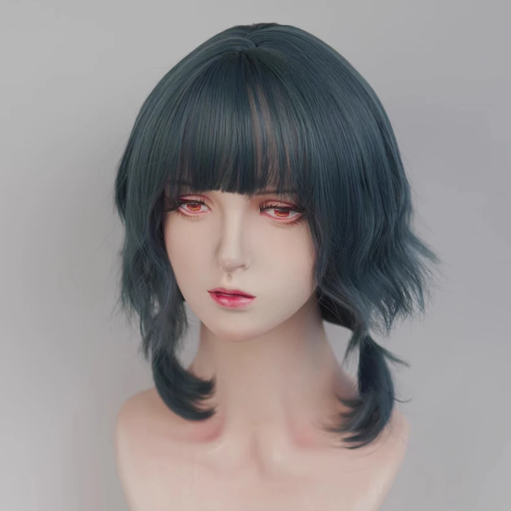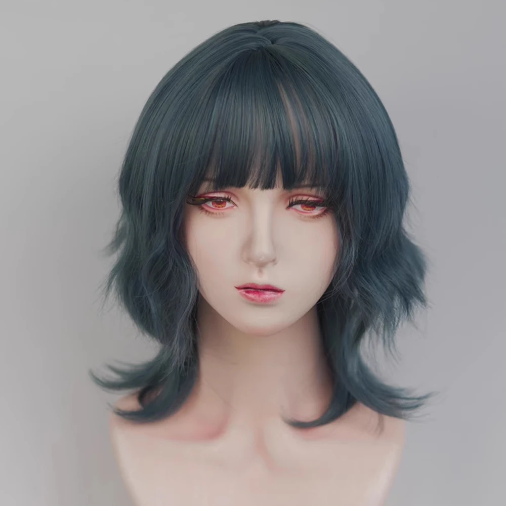VICWIG Blue Short Wavy Mullet Head Wigs with Bangs Synthetic Lolita Cosplay Women Hair Wig for Daily Party