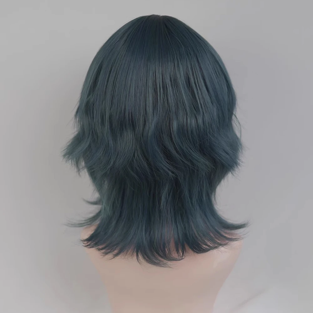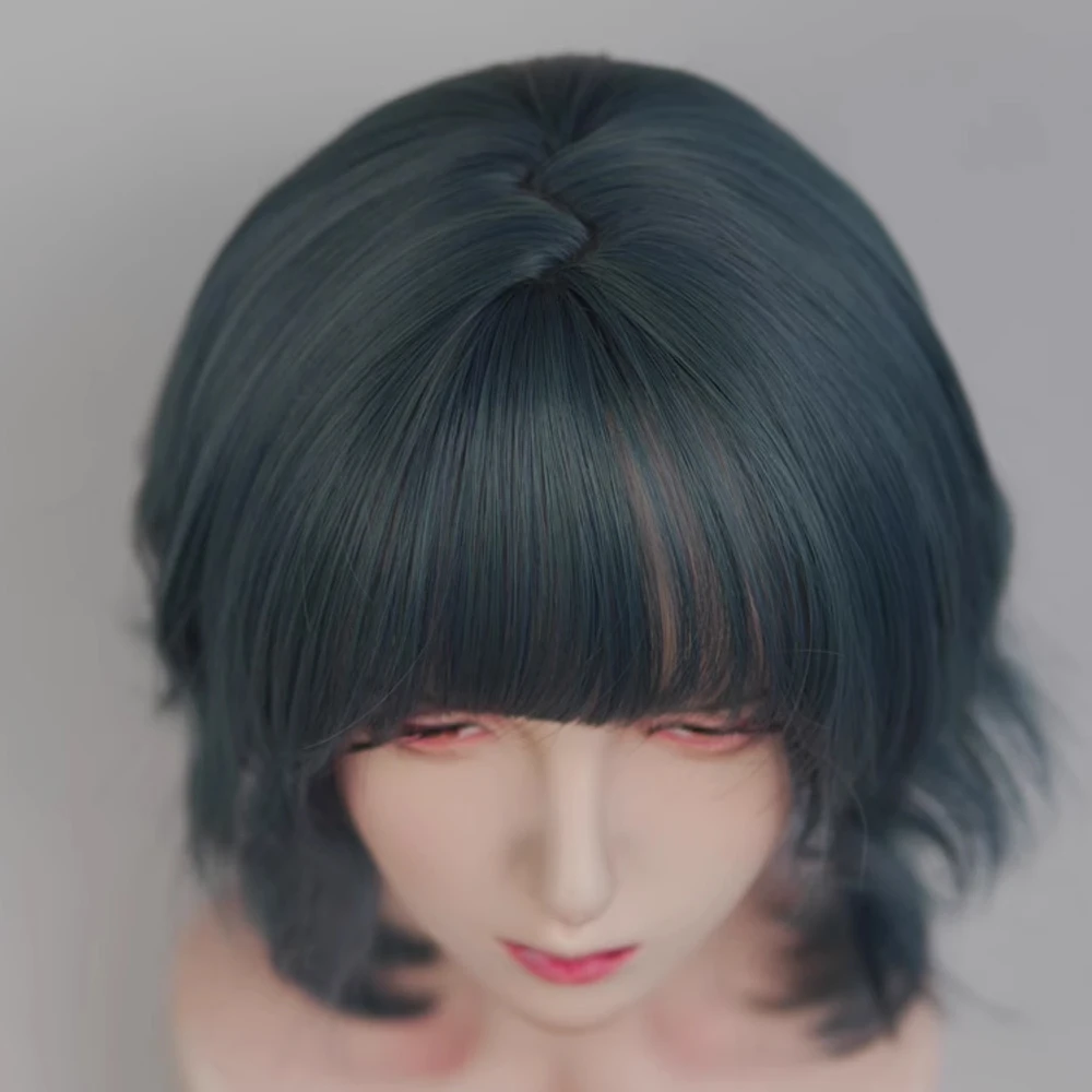 VICWIG Blue Short Wavy Mullet Head Wigs with Bangs Synthetic Lolita Cosplay Women Hair Wig for Daily Party - Blue