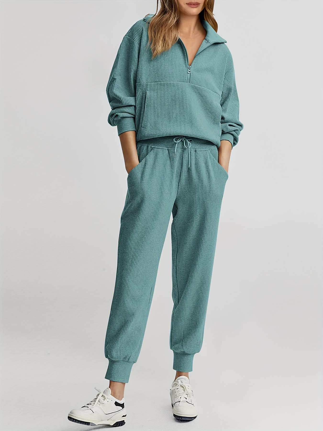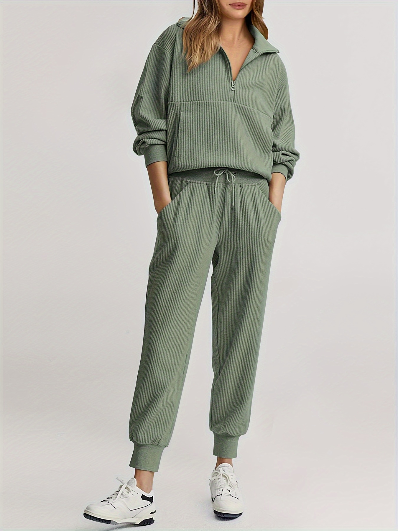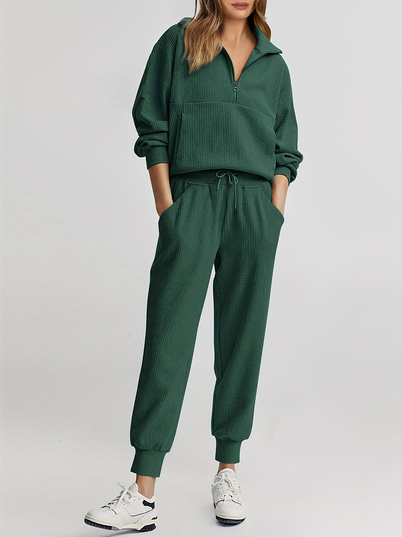 Womens 2 Piece Sweatsuits Set Long Sleeve Half Zip Pullover Sweatshirt Joggers Sweatpants Fall Outfits Tracksuit - Fruit Green / S