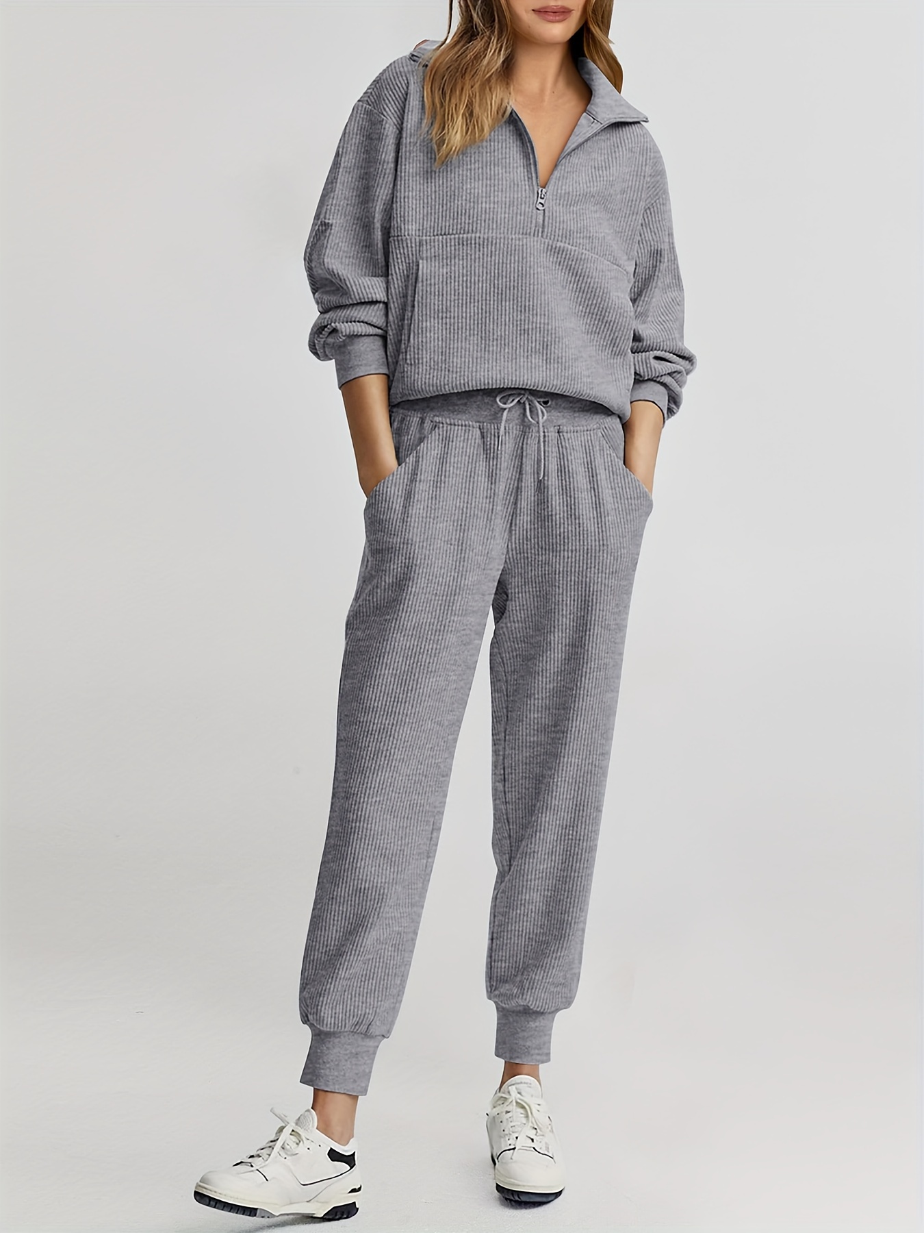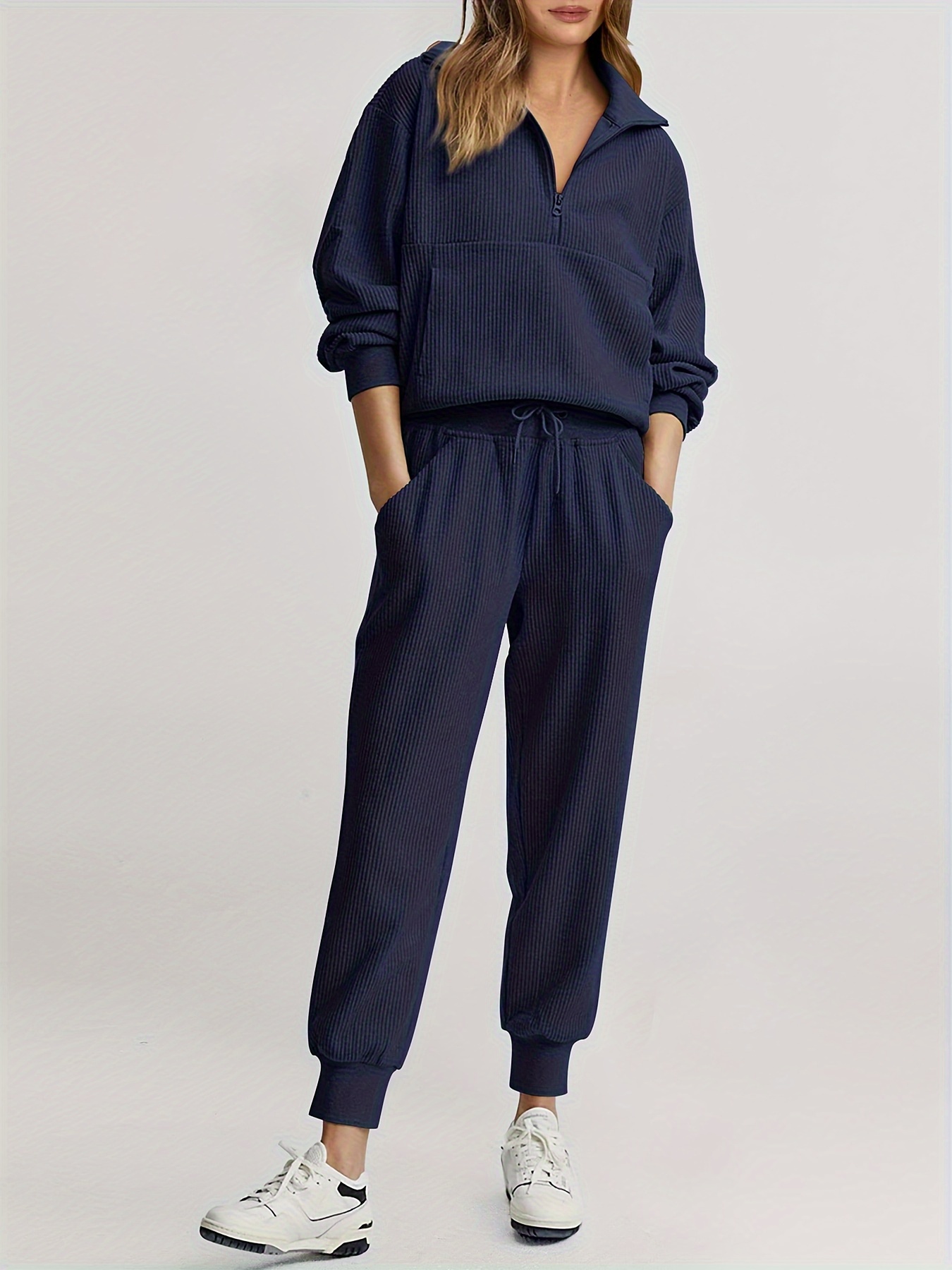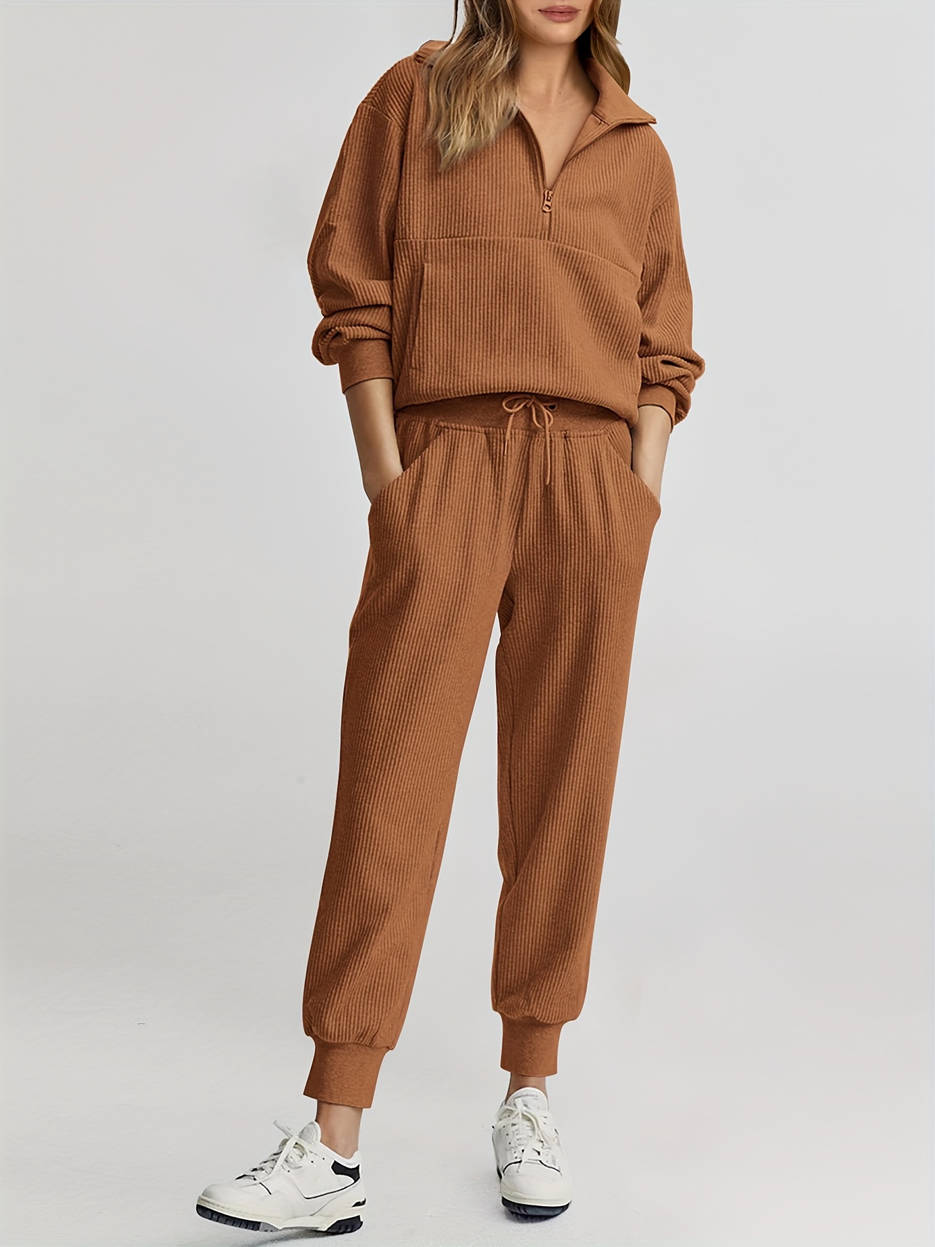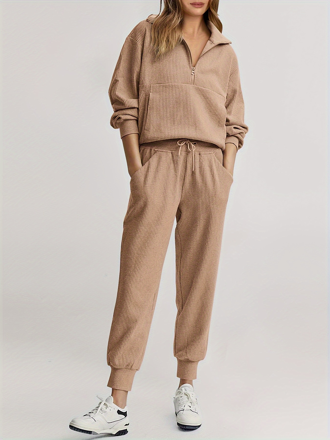 Womens 2 Piece Sweatsuits Set Long Sleeve Half Zip Pullover Sweatshirt Joggers Sweatpants Fall Outfits Tracksuit - Fruit Green / S