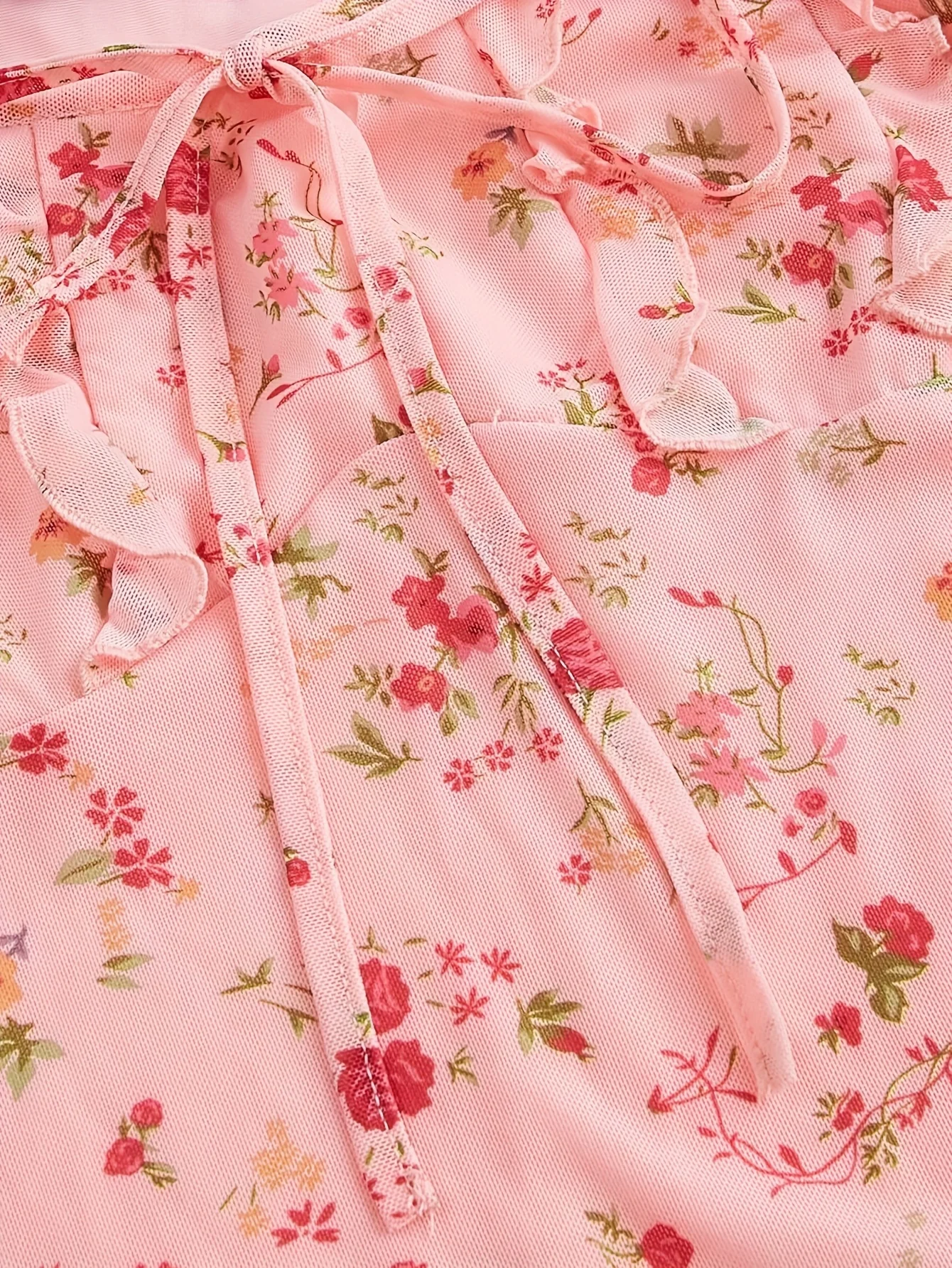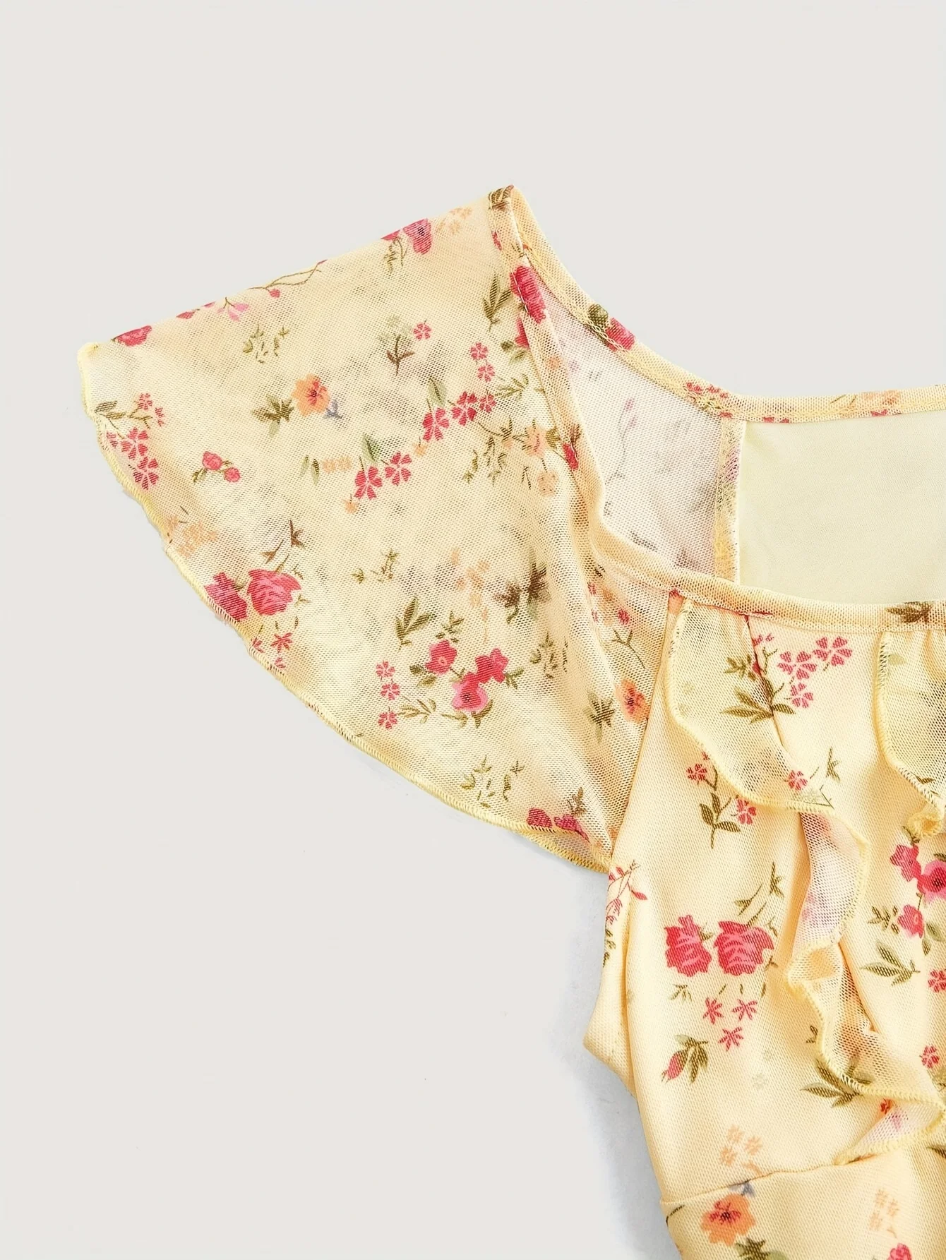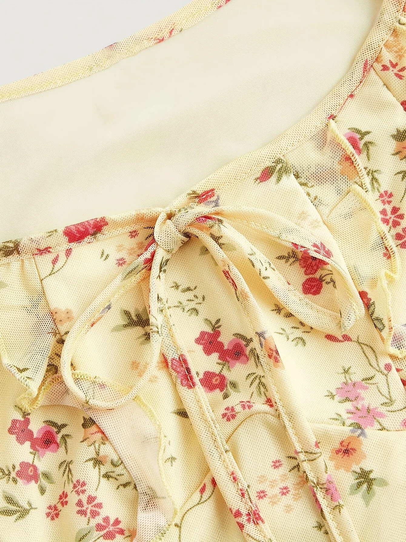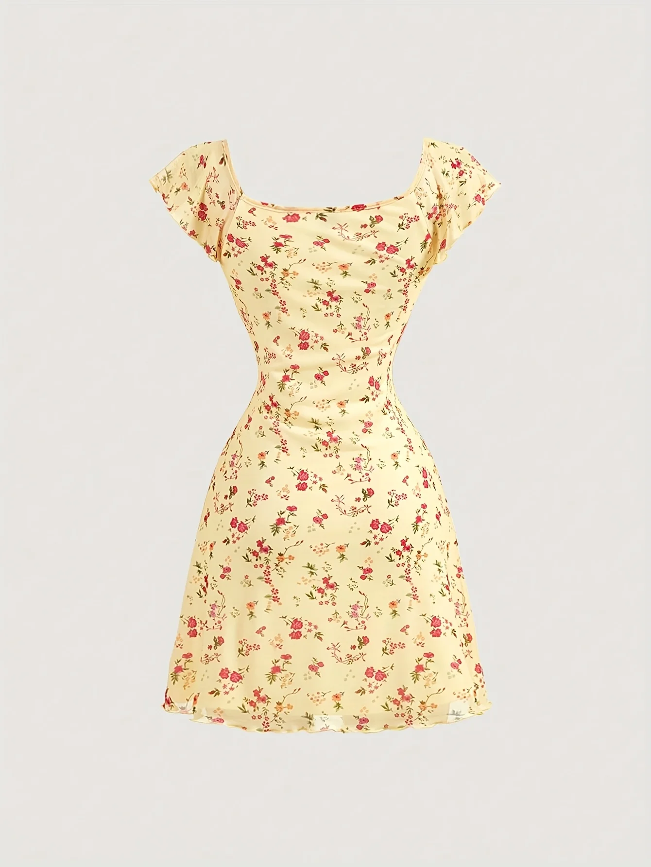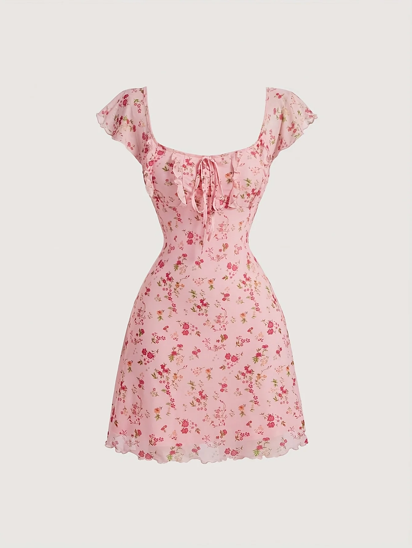 Women's Dresses Sleeveless Ruffled Trim Square Collar Tie-up Cut Out Backless Floral/Dots Summer Party Short Mini A-line Dress - TM2412Y0763 / XS