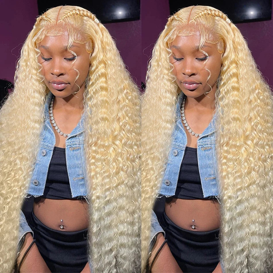613 Colored Deep Wave 13x6 HD Lace Frontal Human Hair Wigs For Women Brazilian 30 40 Inch Honey Blonde 13x4 Curly Human Hair Wig
