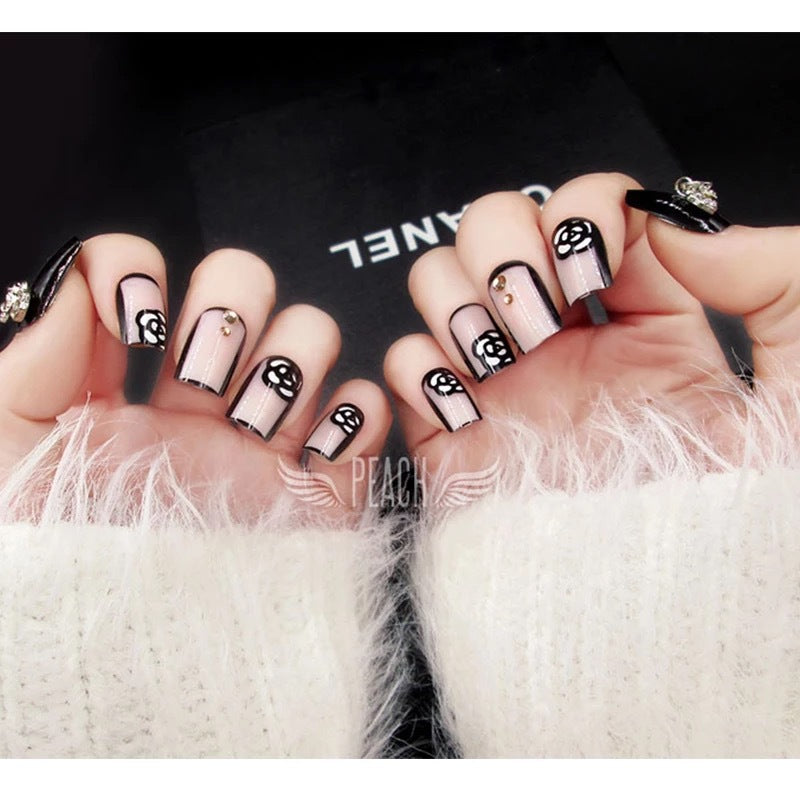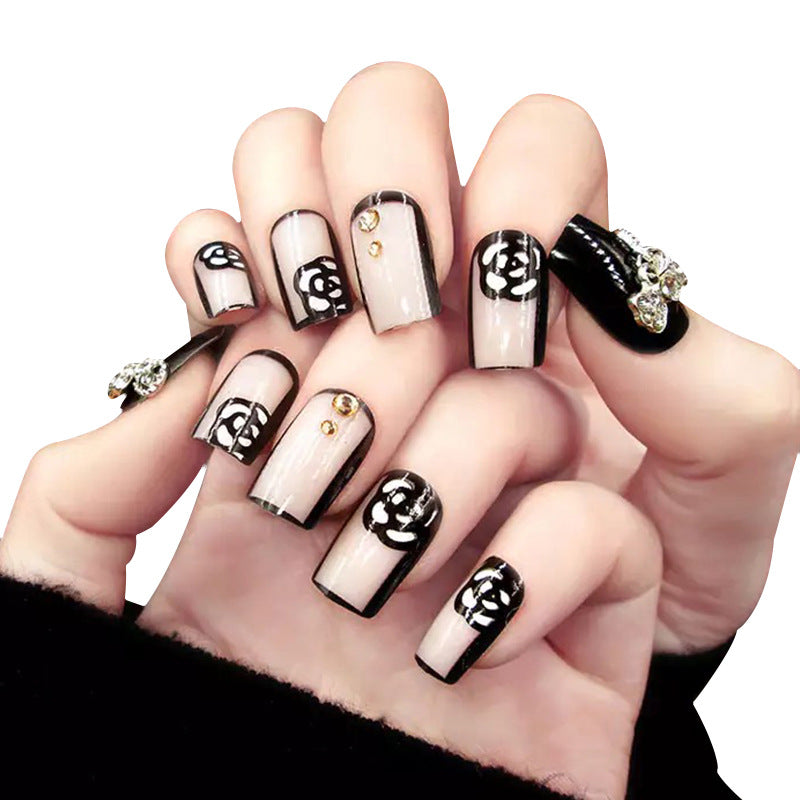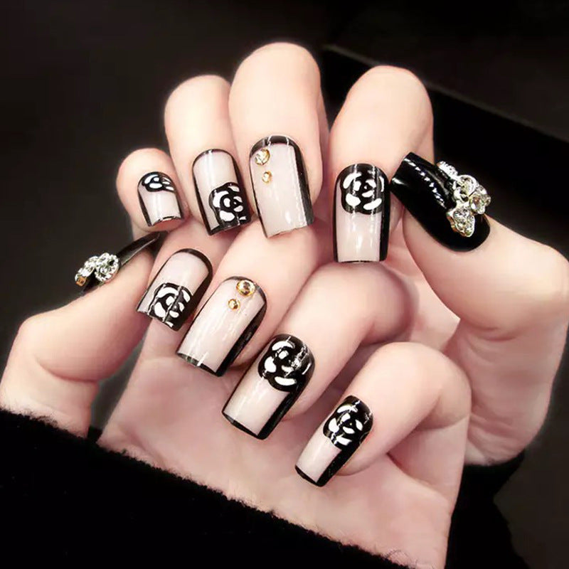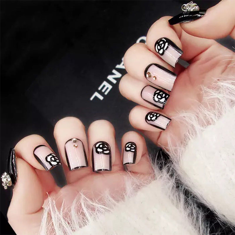 Elegant Floral Drop Nail Component Complete Removable - Camellia pendant glue style