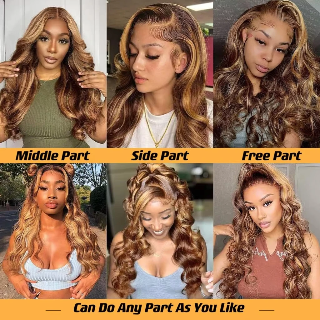 Highlight Blonde Ombre P4/27 Body Wave 13x4 lace front human hair wig 13x6 Water Wave Pre Plucked Brazilian Colored hd lace wigs - 13x4 Lace Wig / 32inches / 180%|United States