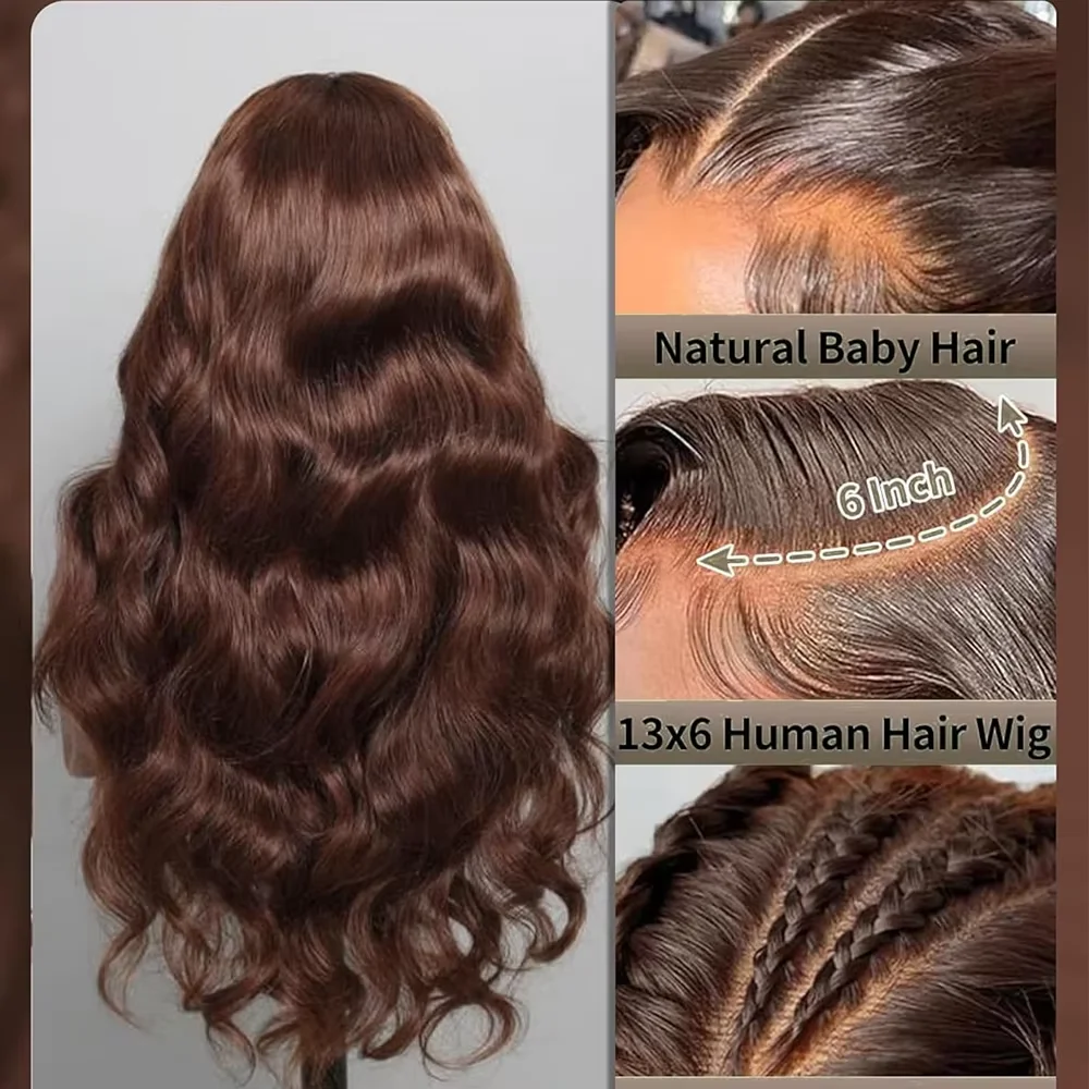 Mossily Brown 13x6 HD Lace Frontal Wigs Human Hair Brazilian Chocolate Brown Body Wave HD Lace Front Human Hair Wigs For Women - 13x4 HD Lace Wig / United States / 20inches|180 Density|2-5 Days Delivery