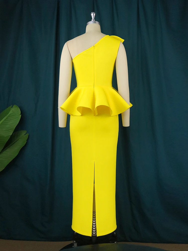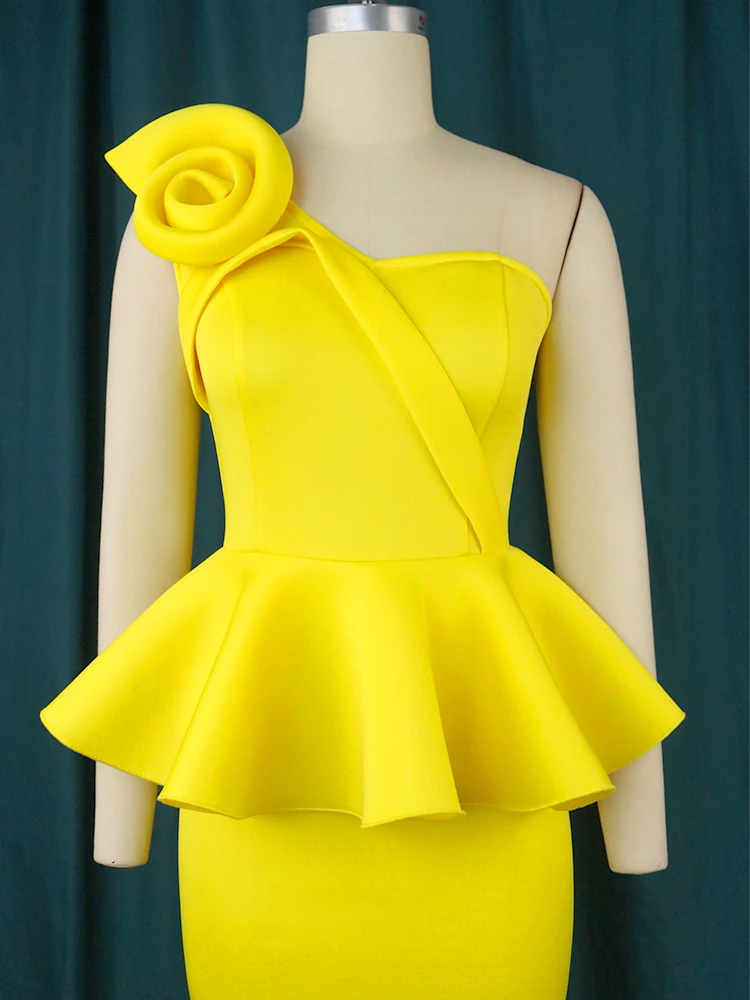 Peplum Dresses One Shoulder Flower Ruffles Empire Package Hip Ankle Length Evening Cocktail Event Prom Outfits for Women 2023