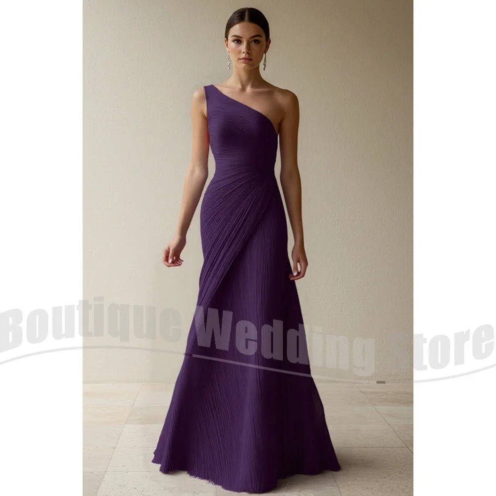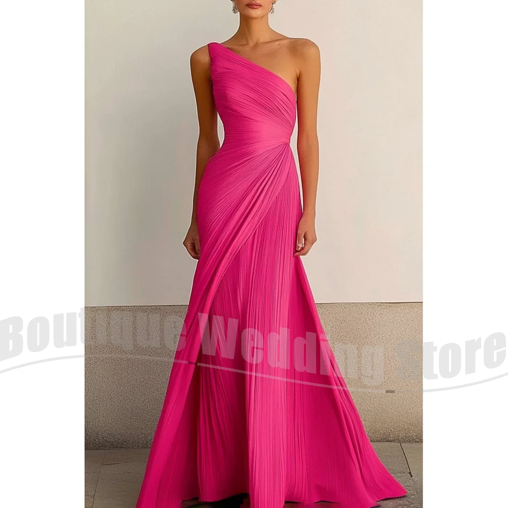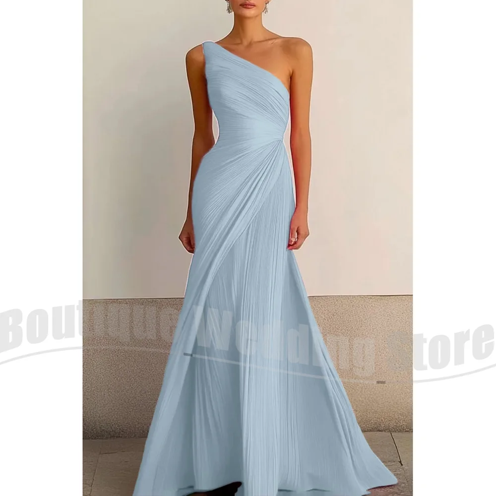 Prom Dresse for Women Fashion Pleated Ruched Party Gowns Elegant One-Shoulder Floor Length Custom Made Formal Evening Dresses