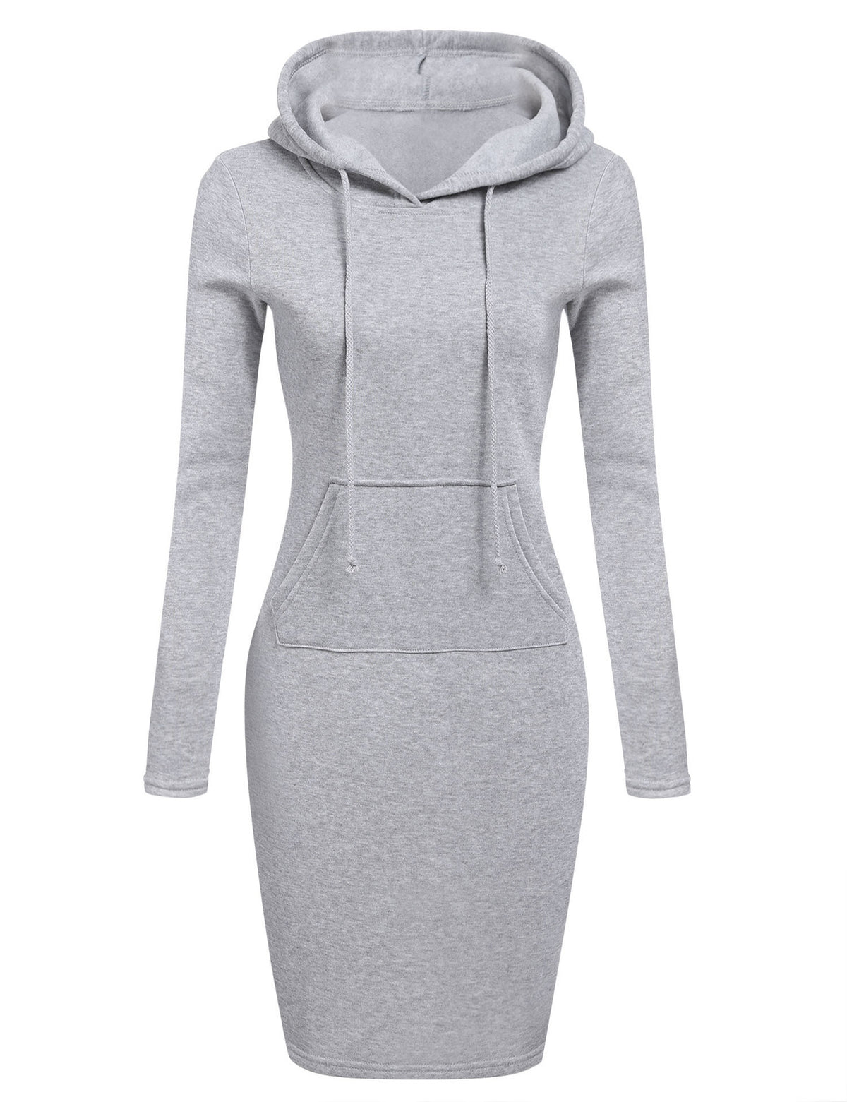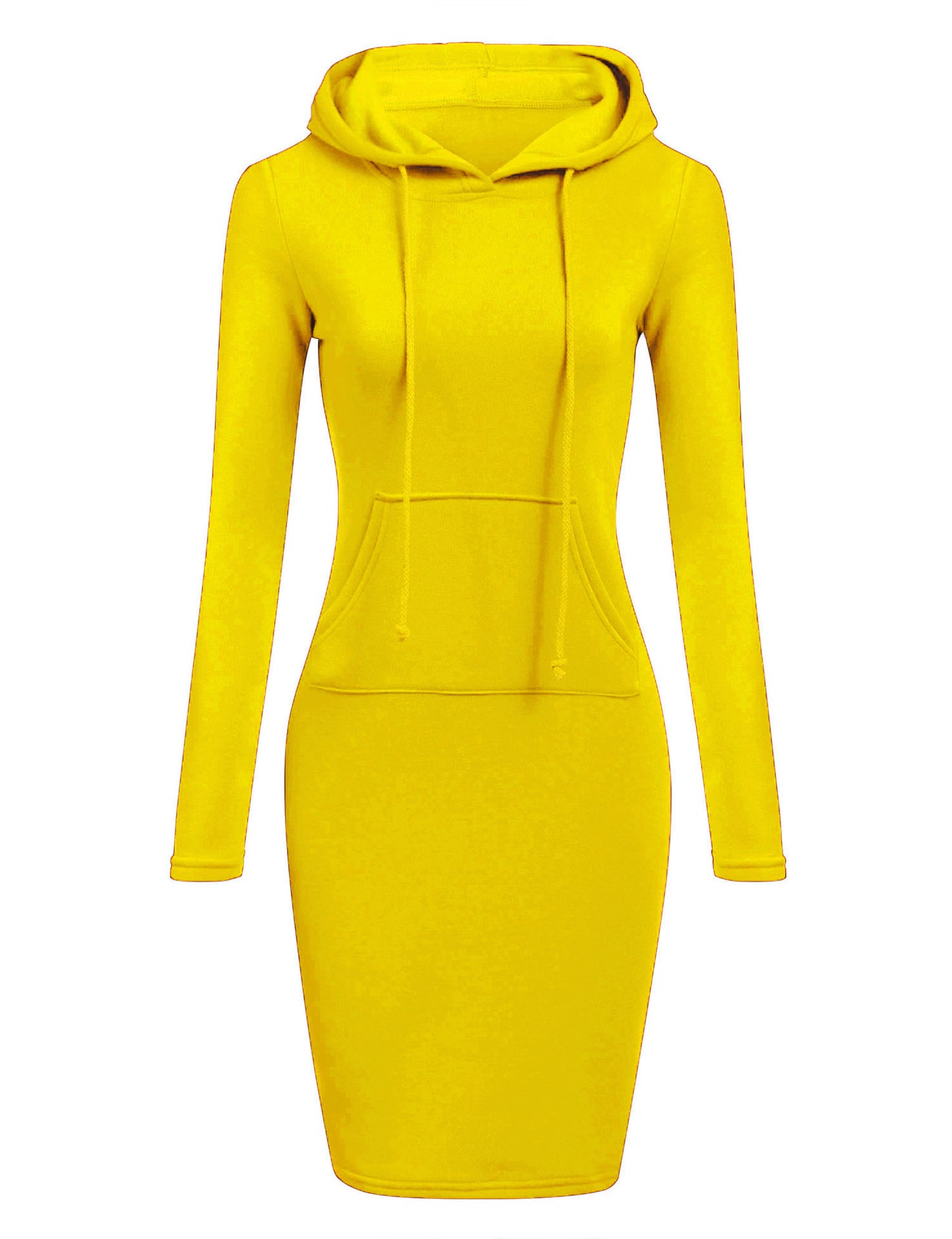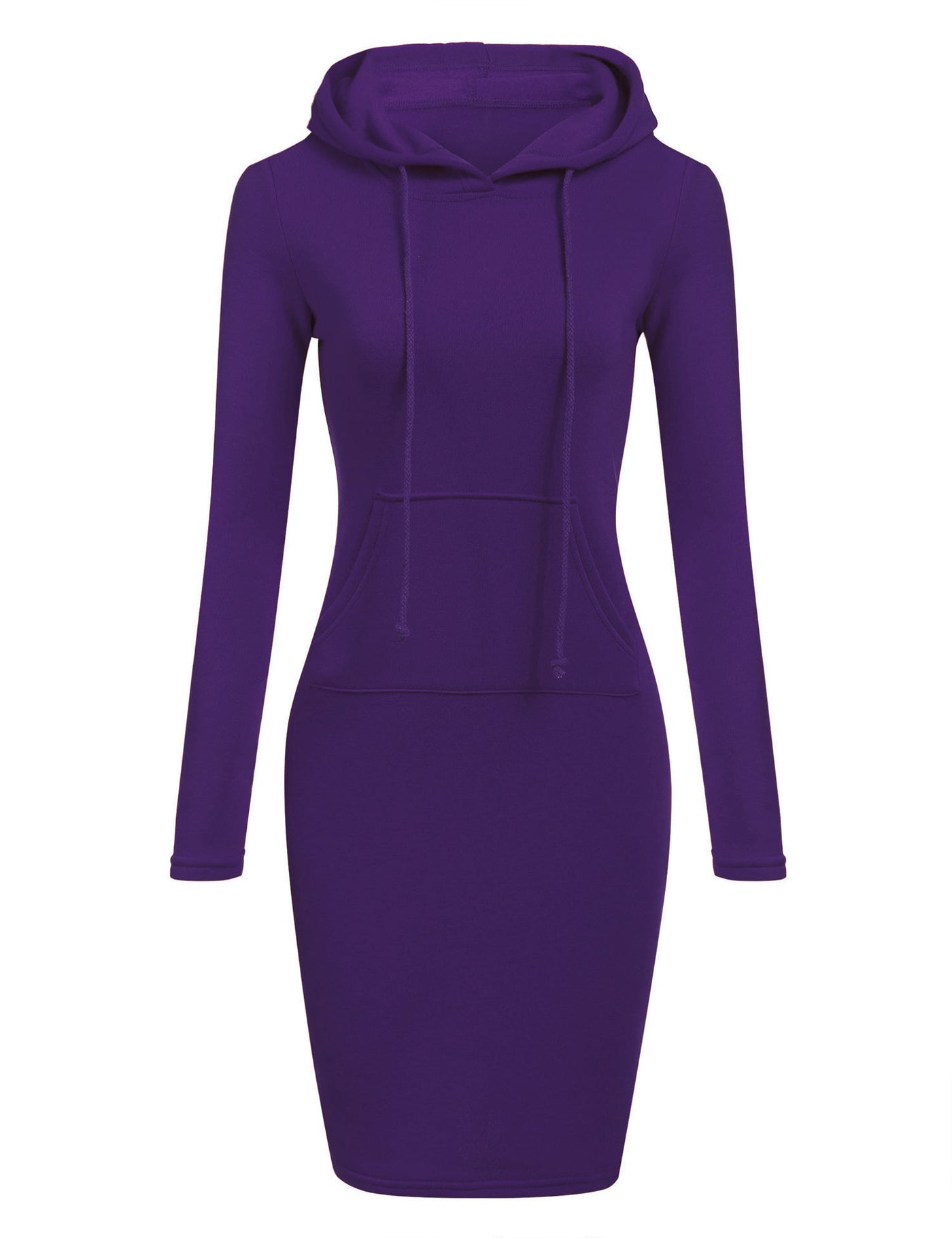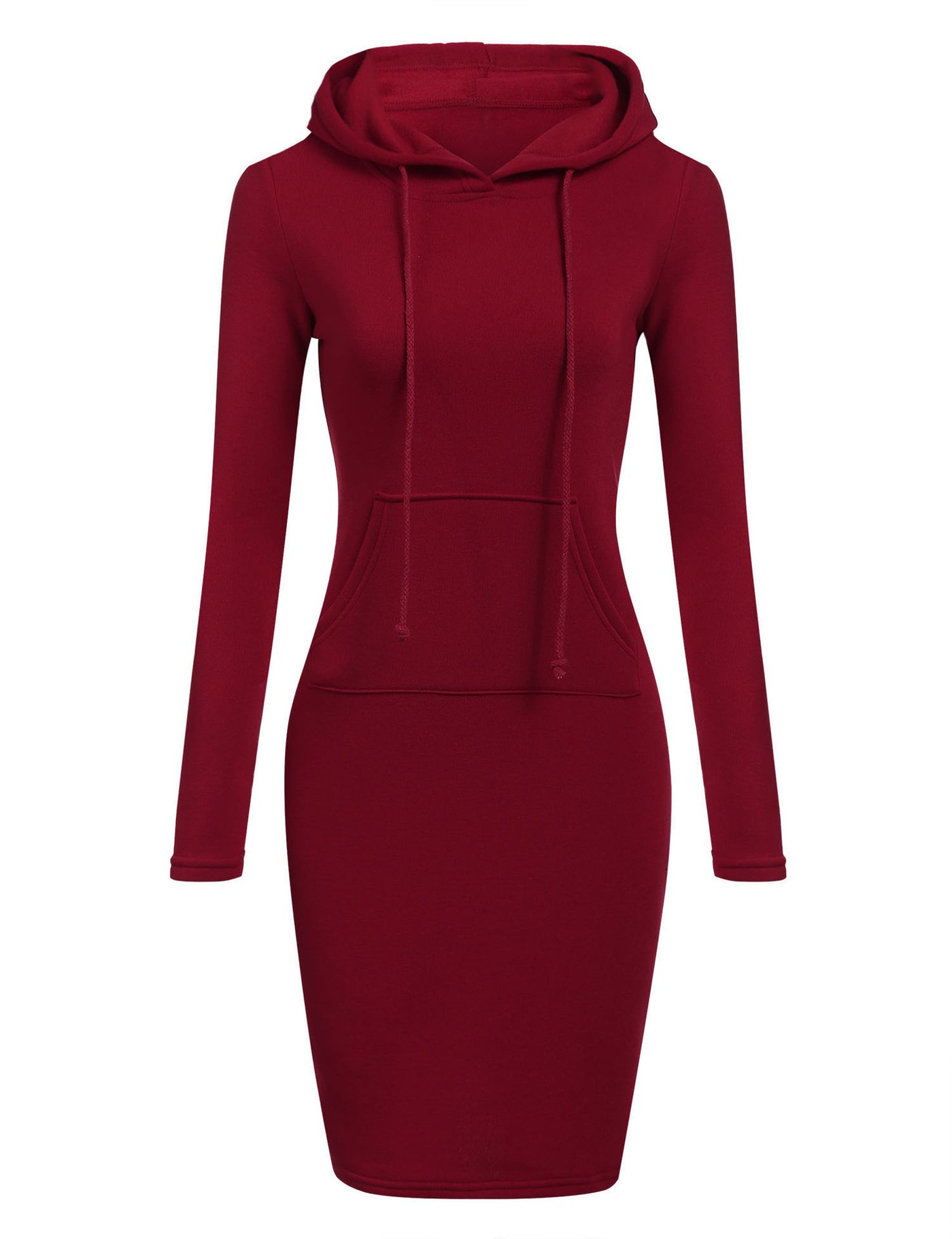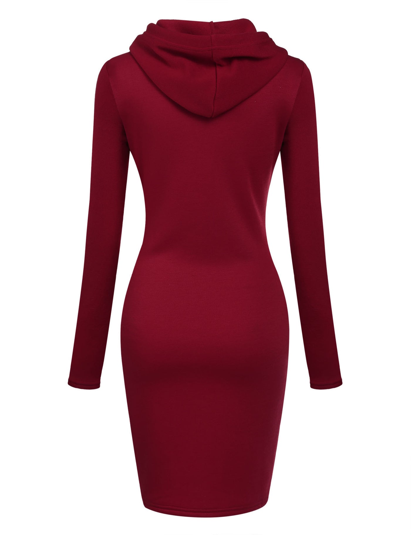 Solid Color Hooded Long Sleeve Dress - Big Red / L