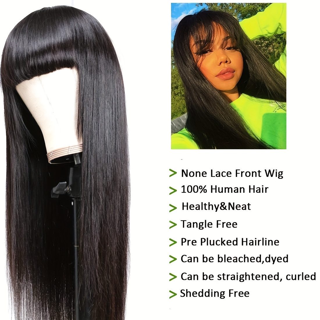 Straight Human Hair Wigs With Bangs None Lace Front Wigs Human Hair Straight Wigs 150% Density Put On And Go Wigs Brazilian Virgin Human Hair Wigs For Women Natural Color - Black / 14inch