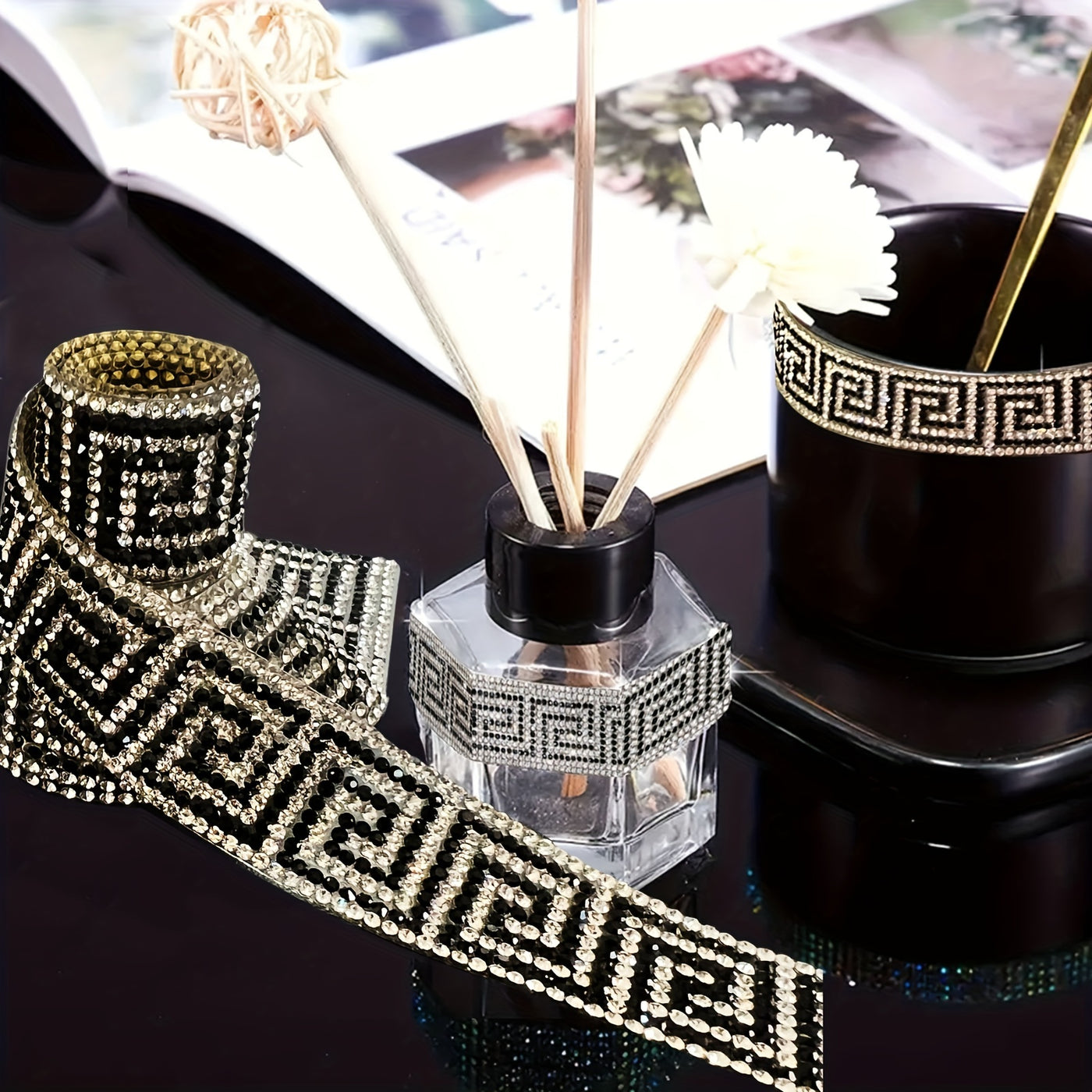 1pc Glass Self-Adhesive Rhinestone Ribbon - Sparkling 2mm Bling Gemstone Sticker Roll for DIY Crafts, Phone, Clothes, Bags, Holiday and Home Decor - Easy to Use, Durable, and Versatile Decoration Accessory - 0.87inch