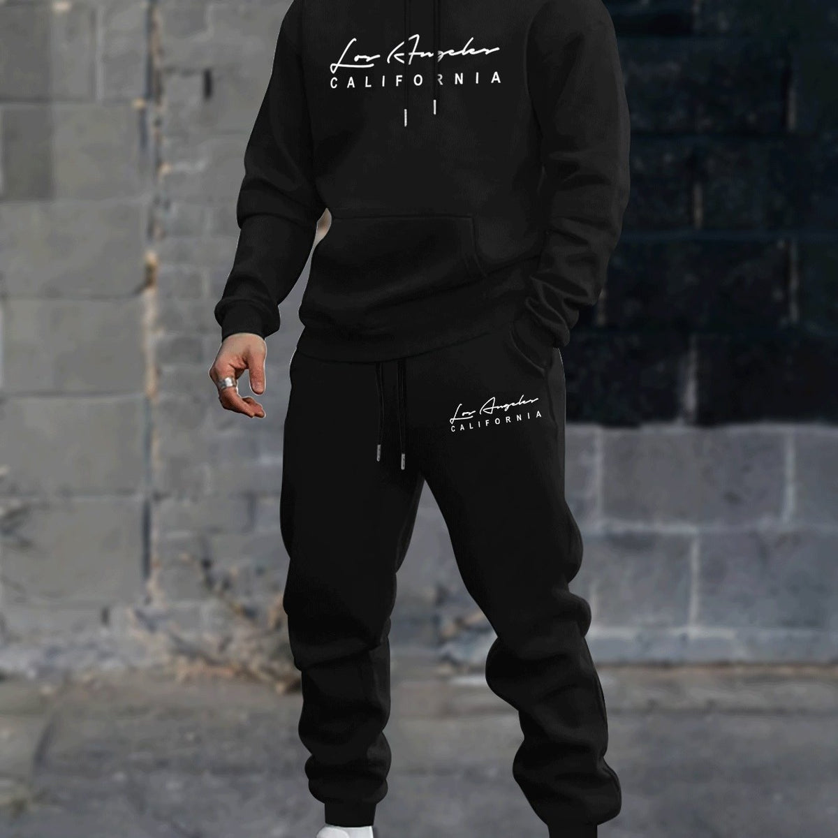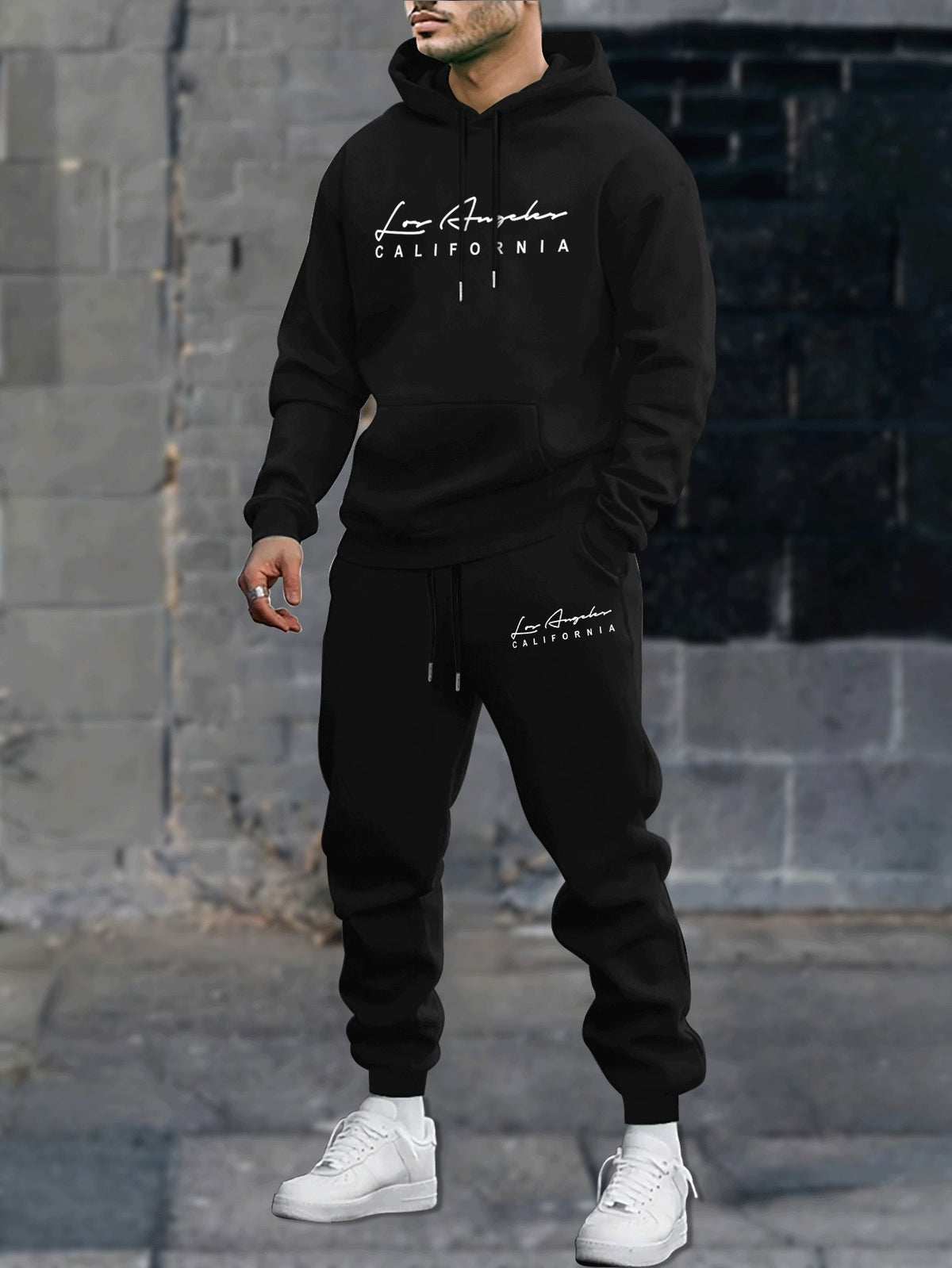 2pcs Cozy Los Angeles Print Men's Long Sleeves Hoodie & Sweatpants Set - Sweatsuits - Ultra-Soft, Casual, Comfy Style, Spring Autumn Winter Outfits Clothing for Everyday Wear - Black / S