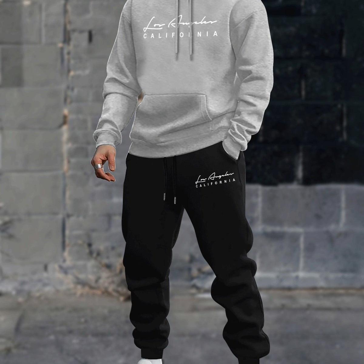 2pcs Cozy Los Angeles Print Men's Long Sleeves Hoodie & Sweatpants Set - Sweatsuits - Ultra-Soft, Casual, Comfy Style, Spring Autumn Winter Outfits Clothing for Everyday Wear