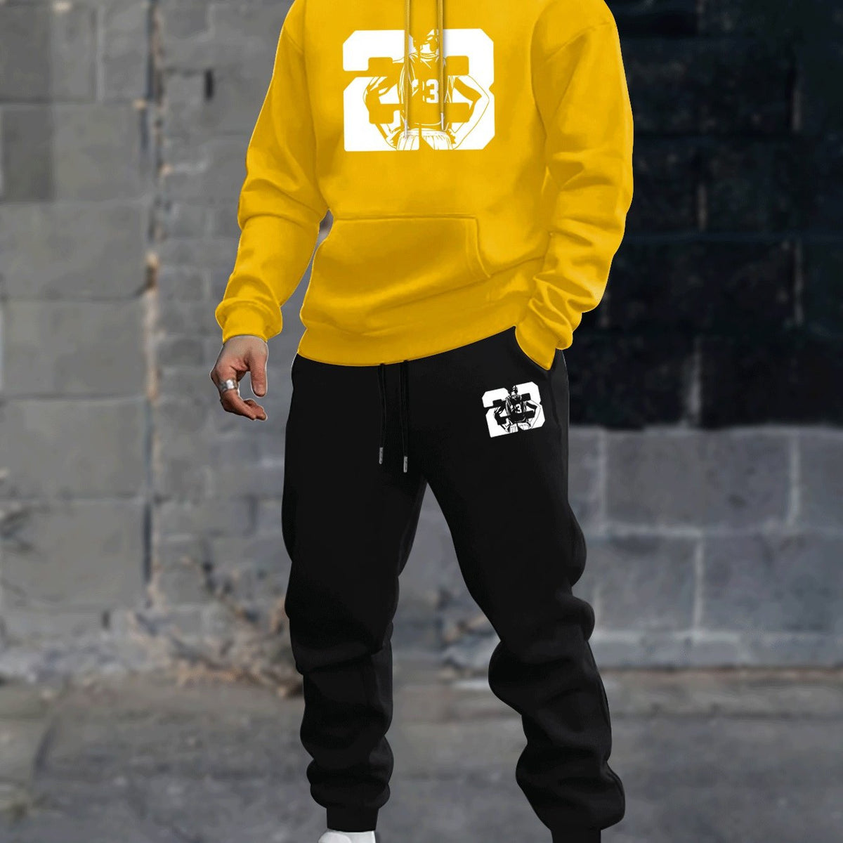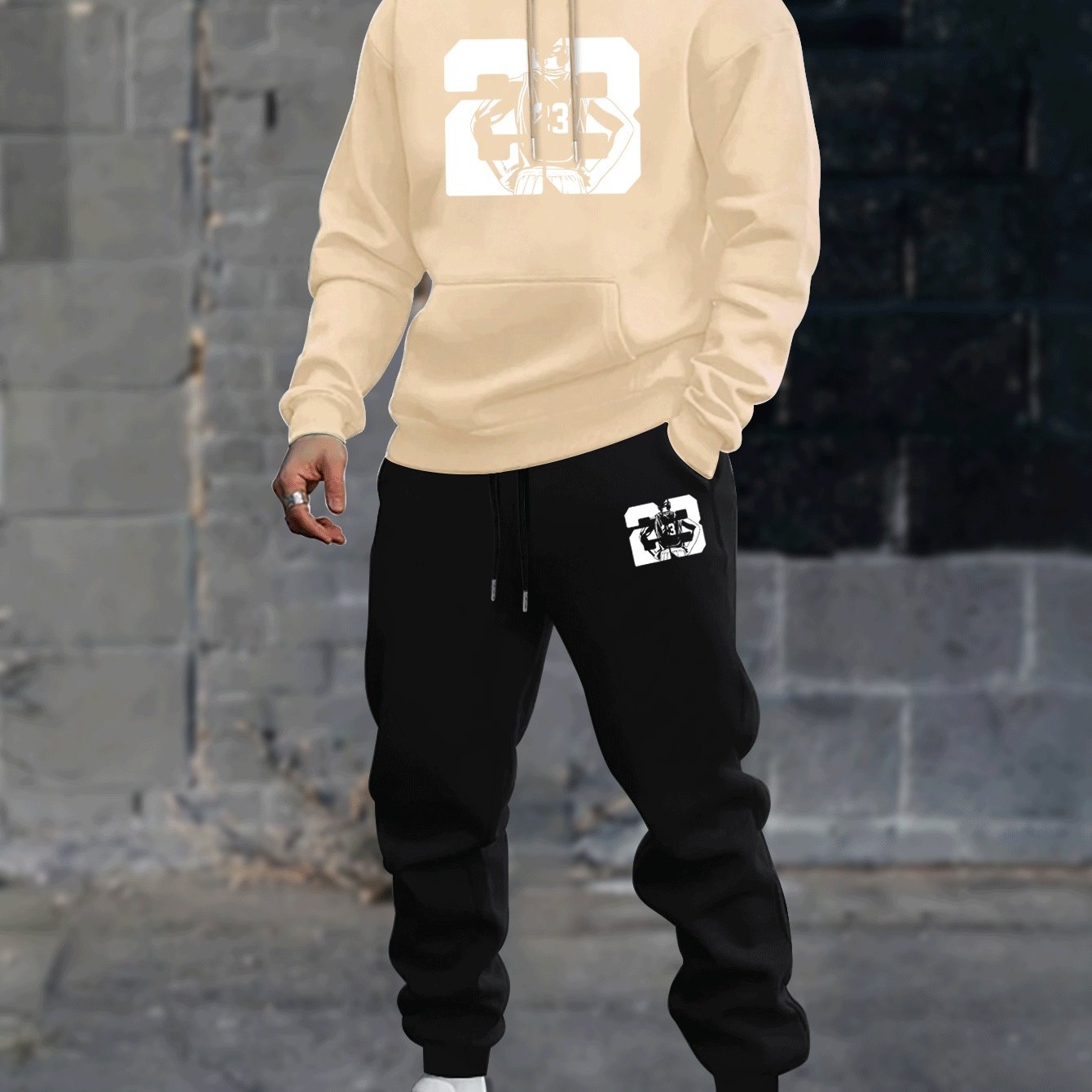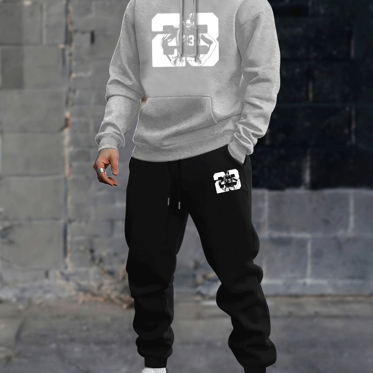 2pcs Men's Co-ord Set - Long Sleeves Hoodie & Sweatpants, Casual Comfy Style, Spring Autumn Winter Outfits Clothing with Silhouette Design No.23