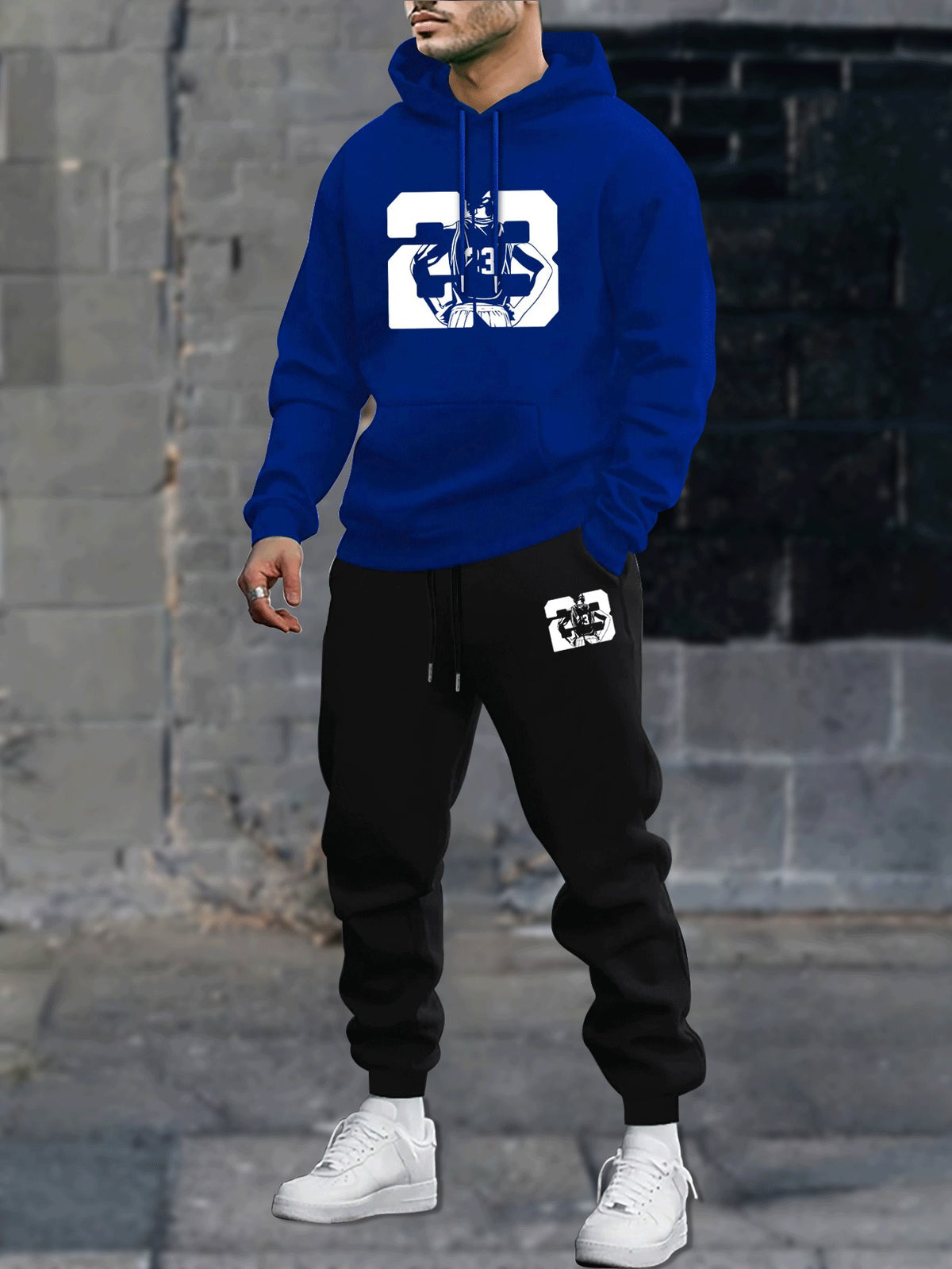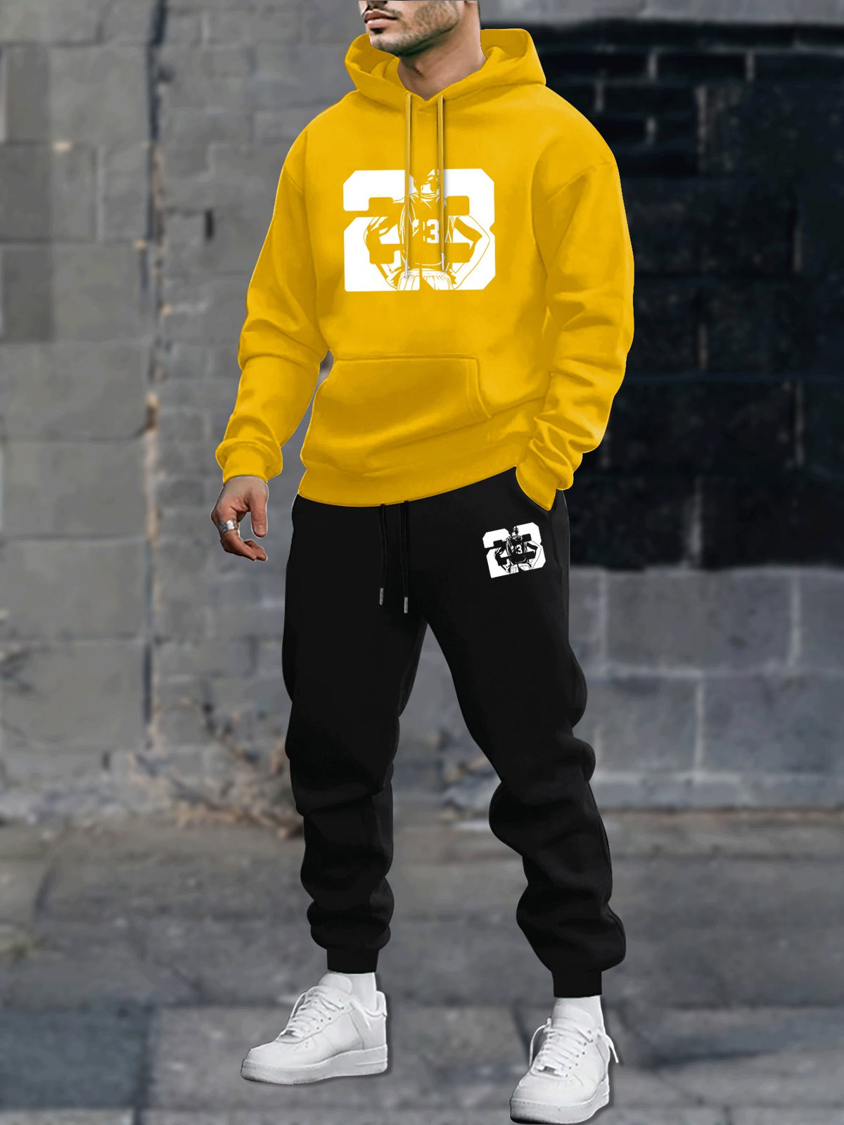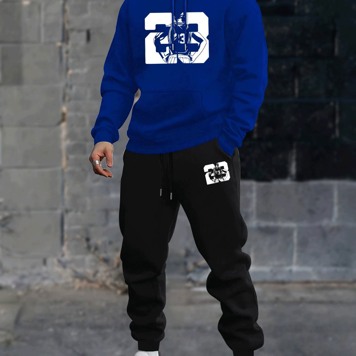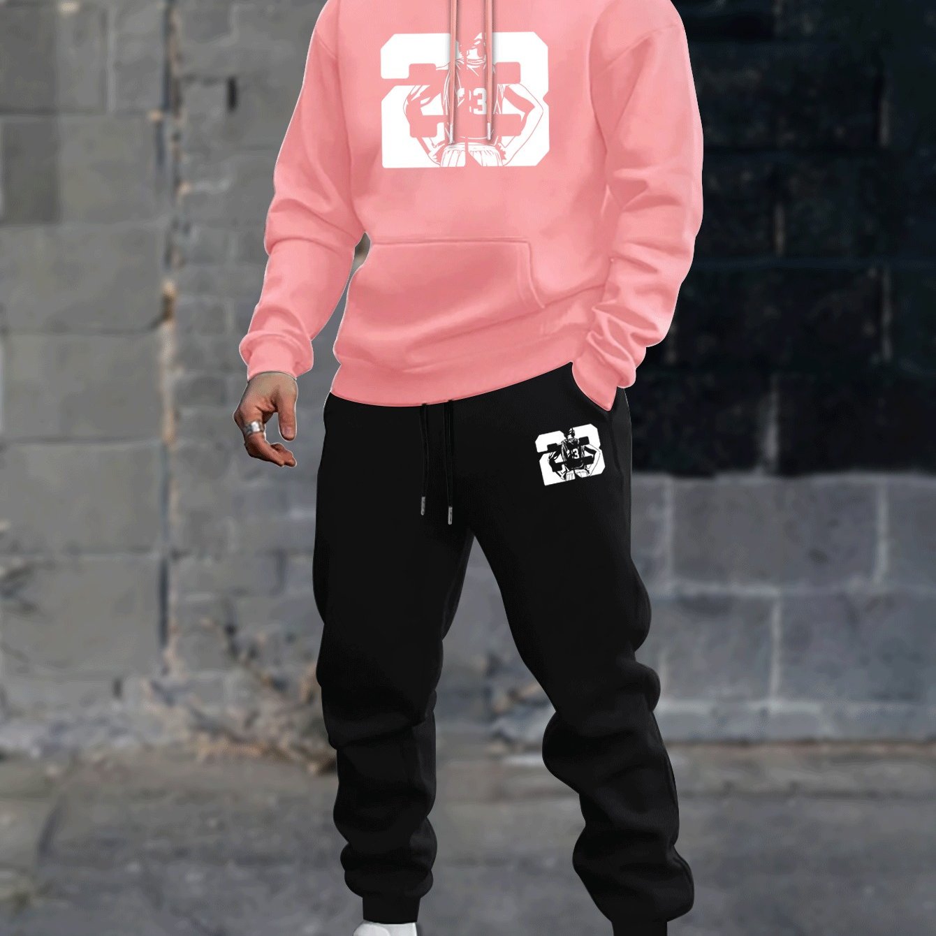 2pcs Men's Co-ord Set - Long Sleeves Hoodie & Sweatpants, Casual Comfy Style, Spring Autumn Winter Outfits Clothing with Silhouette Design No.23