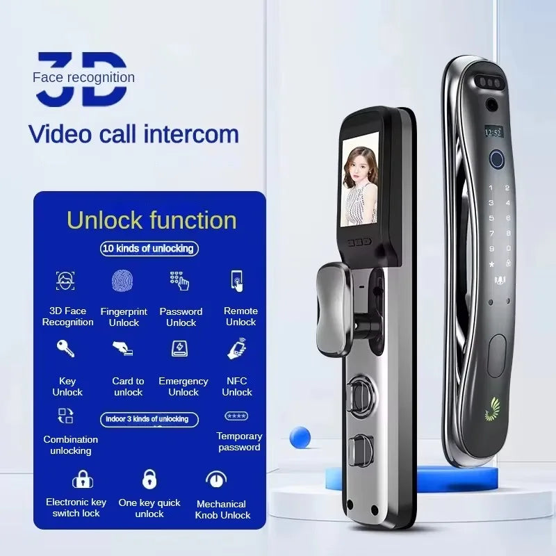 3D Face Smart Door Lock with Camera and Fingerprint Wifi Tuya Smart Locks for Front Door Electronic Keypad Smart Lock Door Hotel - Basic / Built-in Camera / Grey(Baking finish)