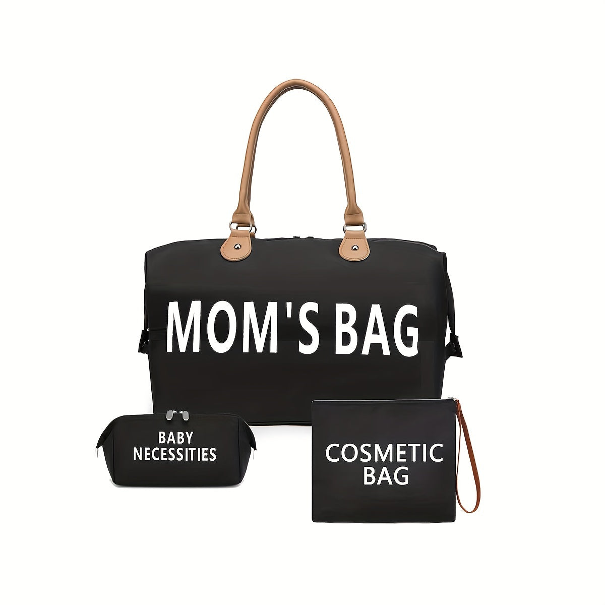 3pcs/set Large Capacity Multifunctional Travel Bags, Waterproof Diaper Bag, Portable Mother Bag - Black