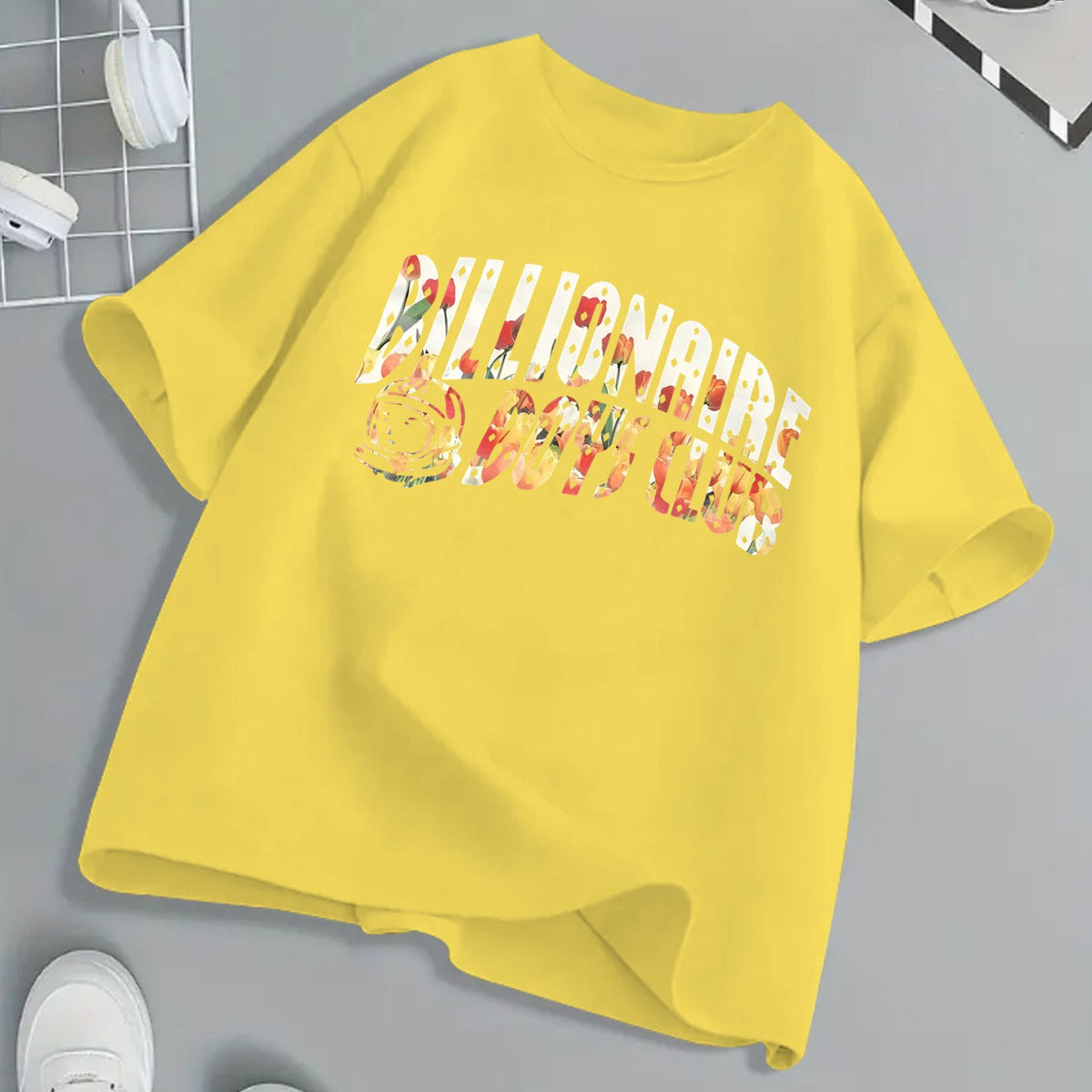 Billionaire Boys Club Floral Print T-Shirt - Bright Yellow, Kids' Summer Essential, 100% Cotton, Loose Fit, Casual Crew Neck, Short Sleeve, Machine Washable, Children's Playwear | Vibrant Kids Fashion | Breathable Fabric, Twe