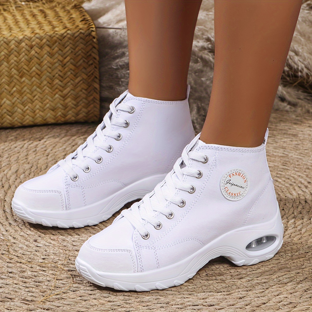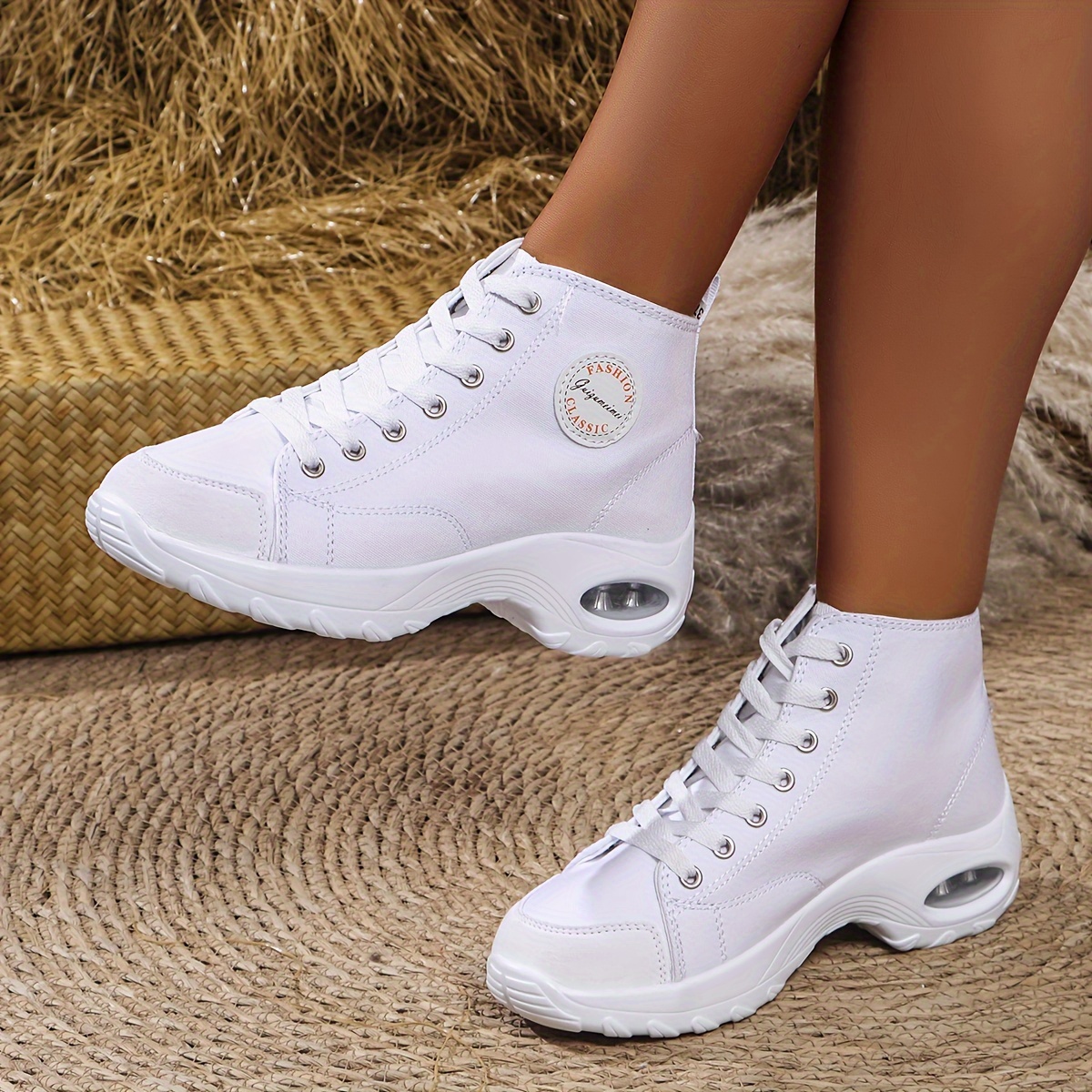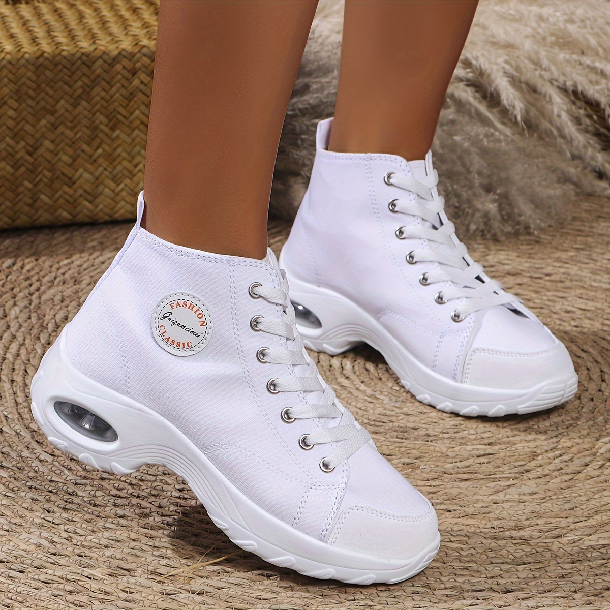 [Bold Style] Women's Fashionable High-Top Walking Shoes with Air Cushion - Lightweight, Thick Sole for Height Boost, Lace-Up, Comfortable Fabric Interior, All-Season Casual Footwear, Versatile Women's Shoes|Trendy Thick Sole|