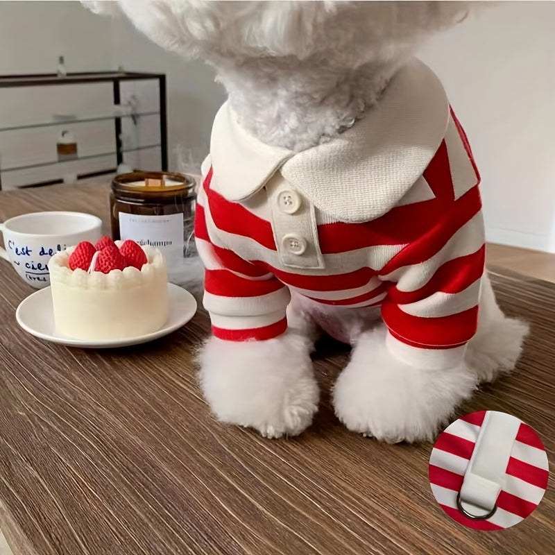Dog Clothes Cute Shirt - Soft & Breathable Collared T-Shirt Summer Fall Outfits For Small Medium Dogs Cat - Great For Doggy And Kitten, Dog Leash On The Back - XS / Red