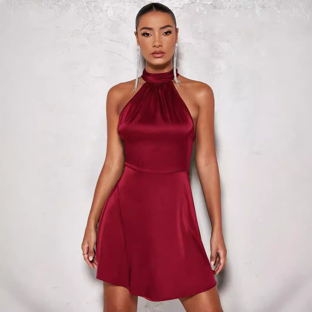 Dress Light Dress Short Dress Sexy Neck Dress - Sky Blue / L