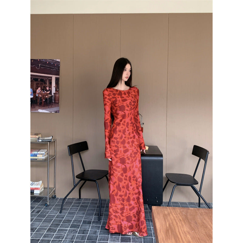 Elegant And Slimming Chiffon Printed Stylish Fake Long-Sleeved One-Piece Long Dress - Picture Color / Xs