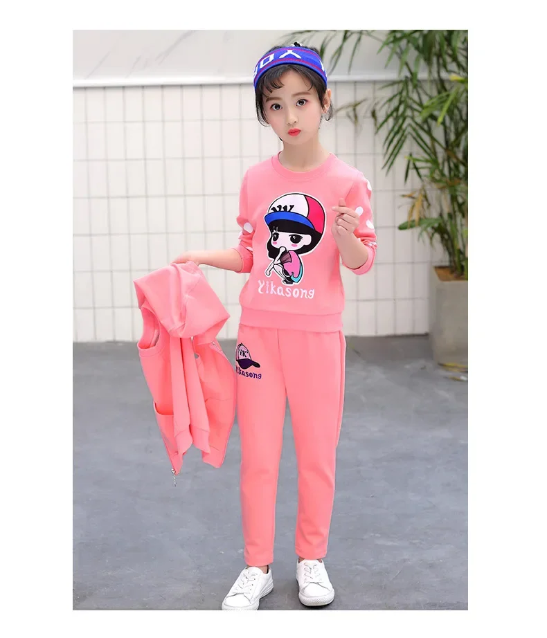 Fashion Girls Clothes Sets Autumn Winter Vest + Coat + Pants 3PCS Baby Kids Tracksuit Children’s Clothing Teen 5 6 8 10 12 years