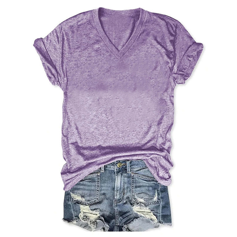 Fashion Solid Print Tee V-neck Top For Spring Summer Europe US