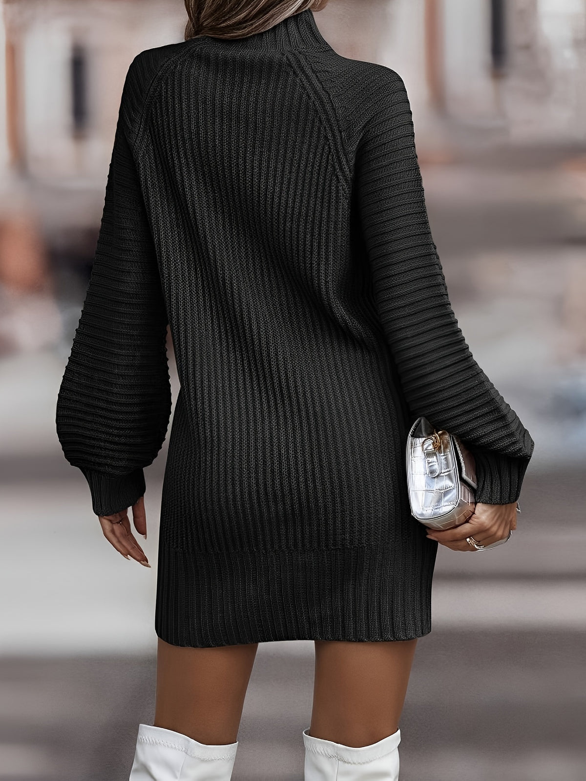 Fashion Women's Mock Turtleneck Sweater Dress Trendy Pullover Puff Sleeve Fall Dress Knit Winter Outfits - Burgundy / S