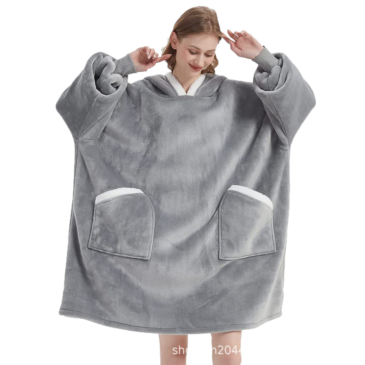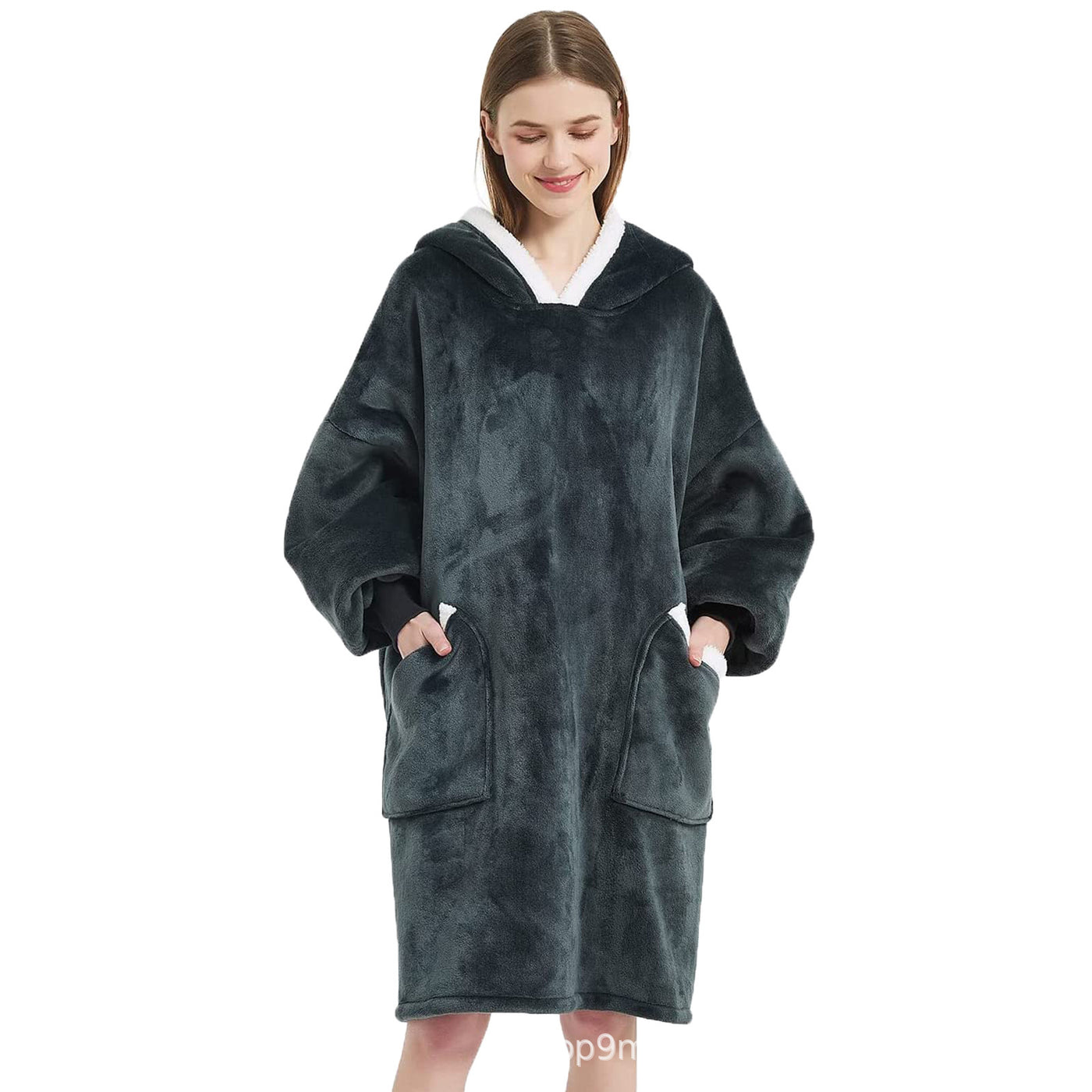 Flannel Home Lazy Dress Pullover Blanket Hoodie Home Nightgown - Double-pocket Pink / Plus Size