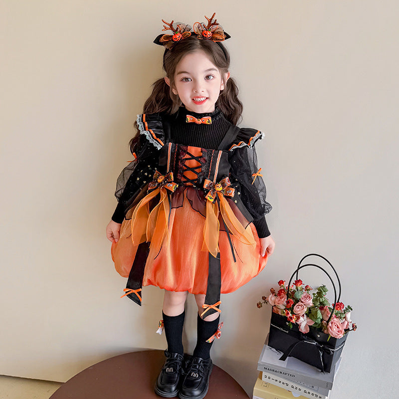 Halloween Witch Lolita Princess Dress Pumpkin Skirt Luminous Cos Dress