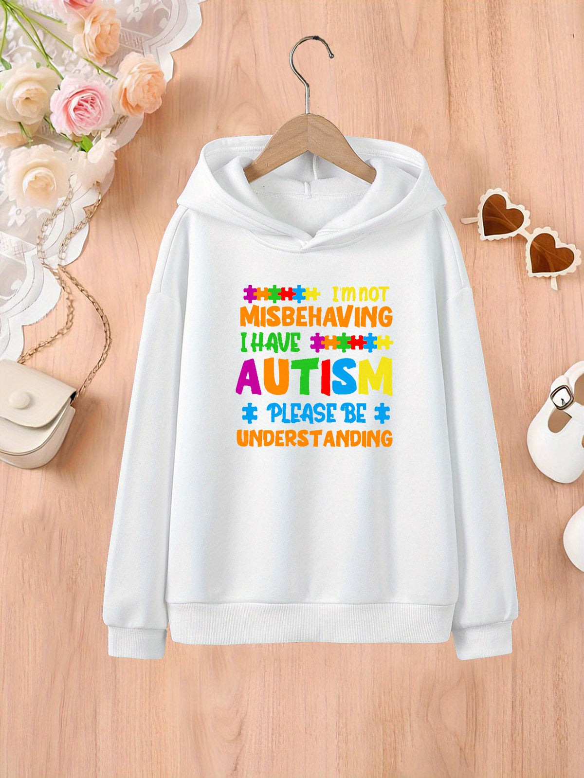 Kids' Fashion Hoodie with Autism Awareness Message, Polyester Knit Fabric, Casual Regular Fit, Hooded Style for Children 12 and Under, Comfortable Slight Stretch Material, Spring/Fall Season – Unisex Pullover with Creative - White / 5-6Y