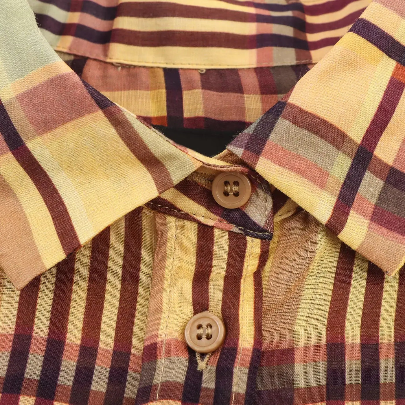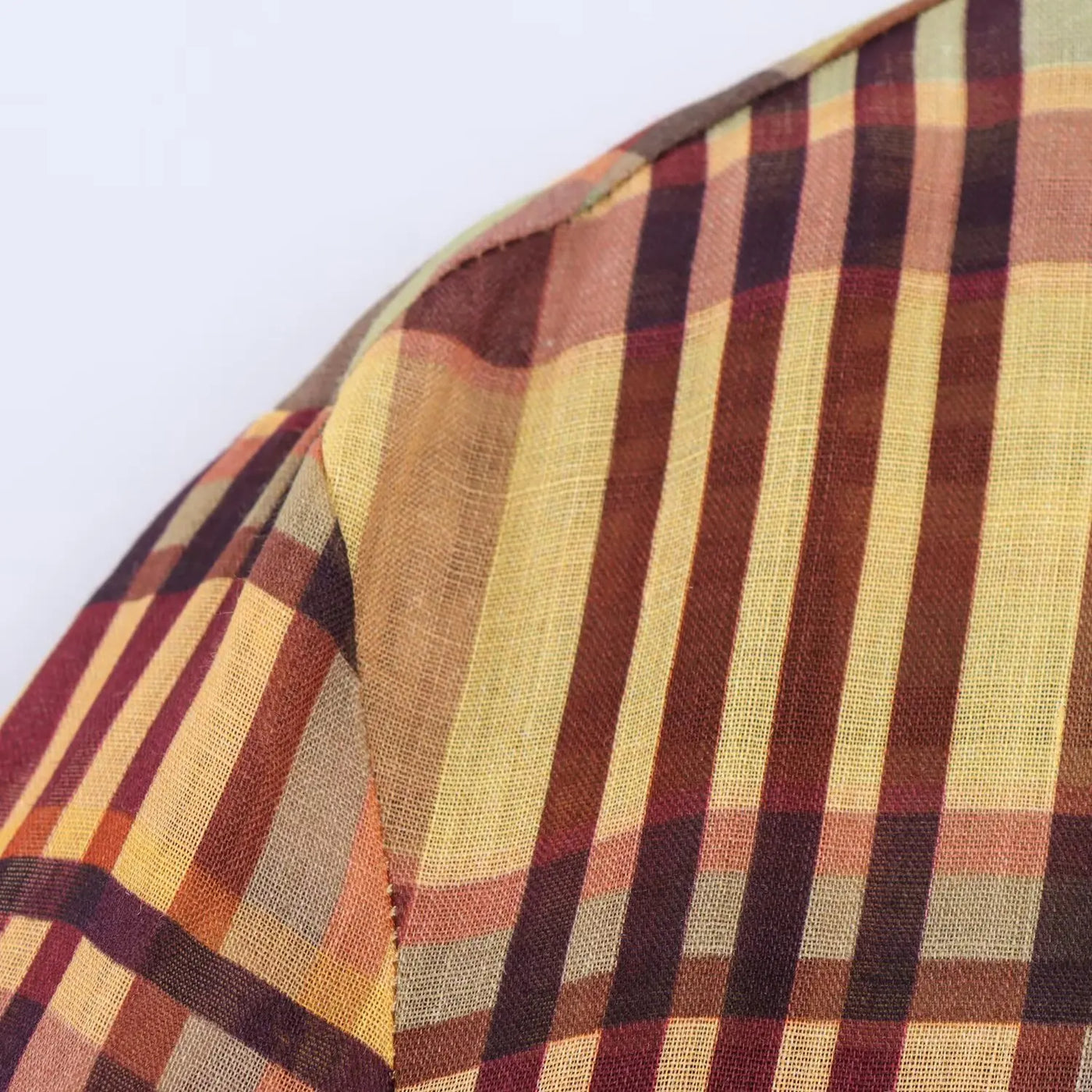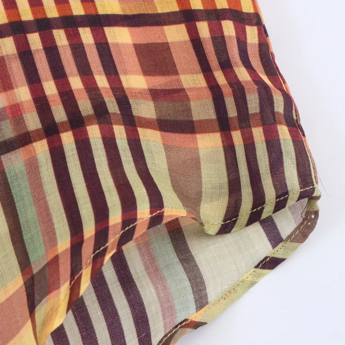 Ladies shirt 2025 new women's linen plaid shirt fashionable and elegant single-breasted design - XX11732 / XS