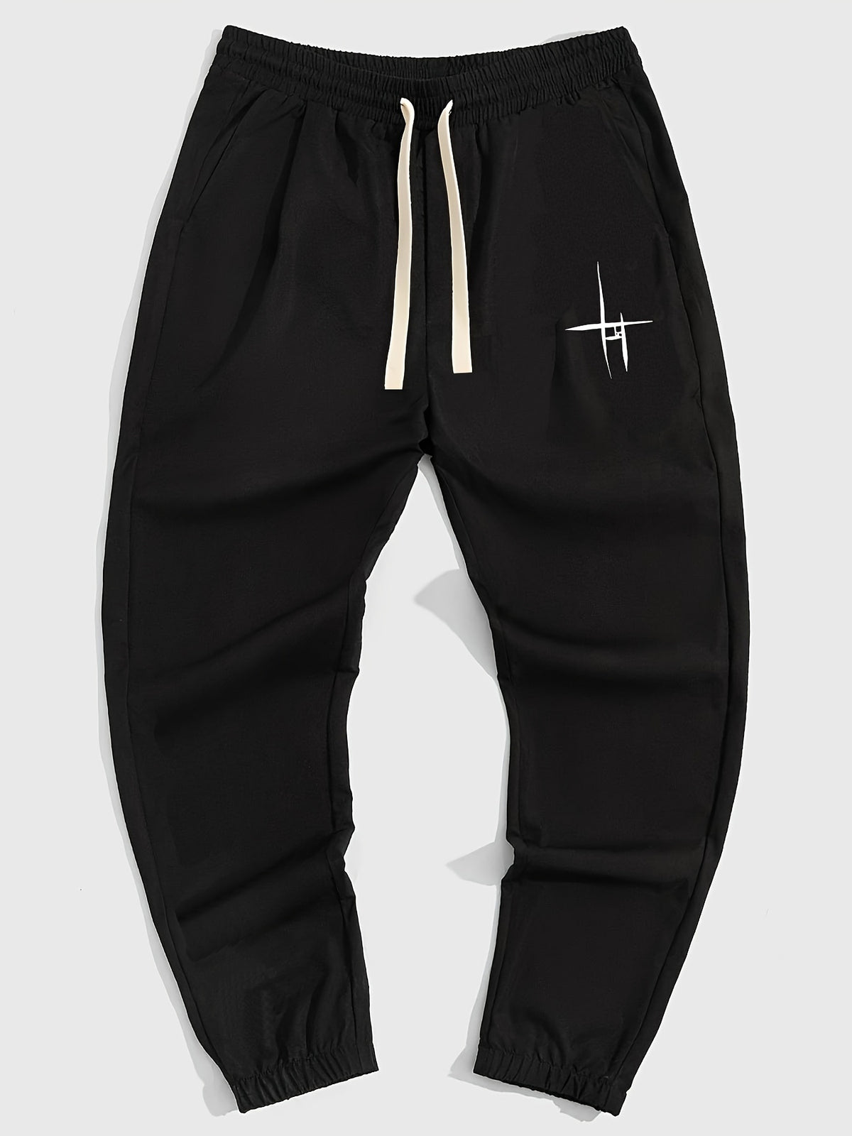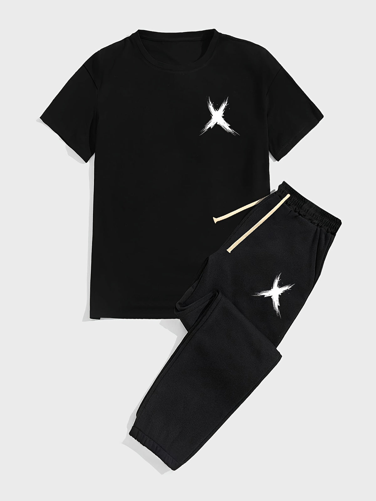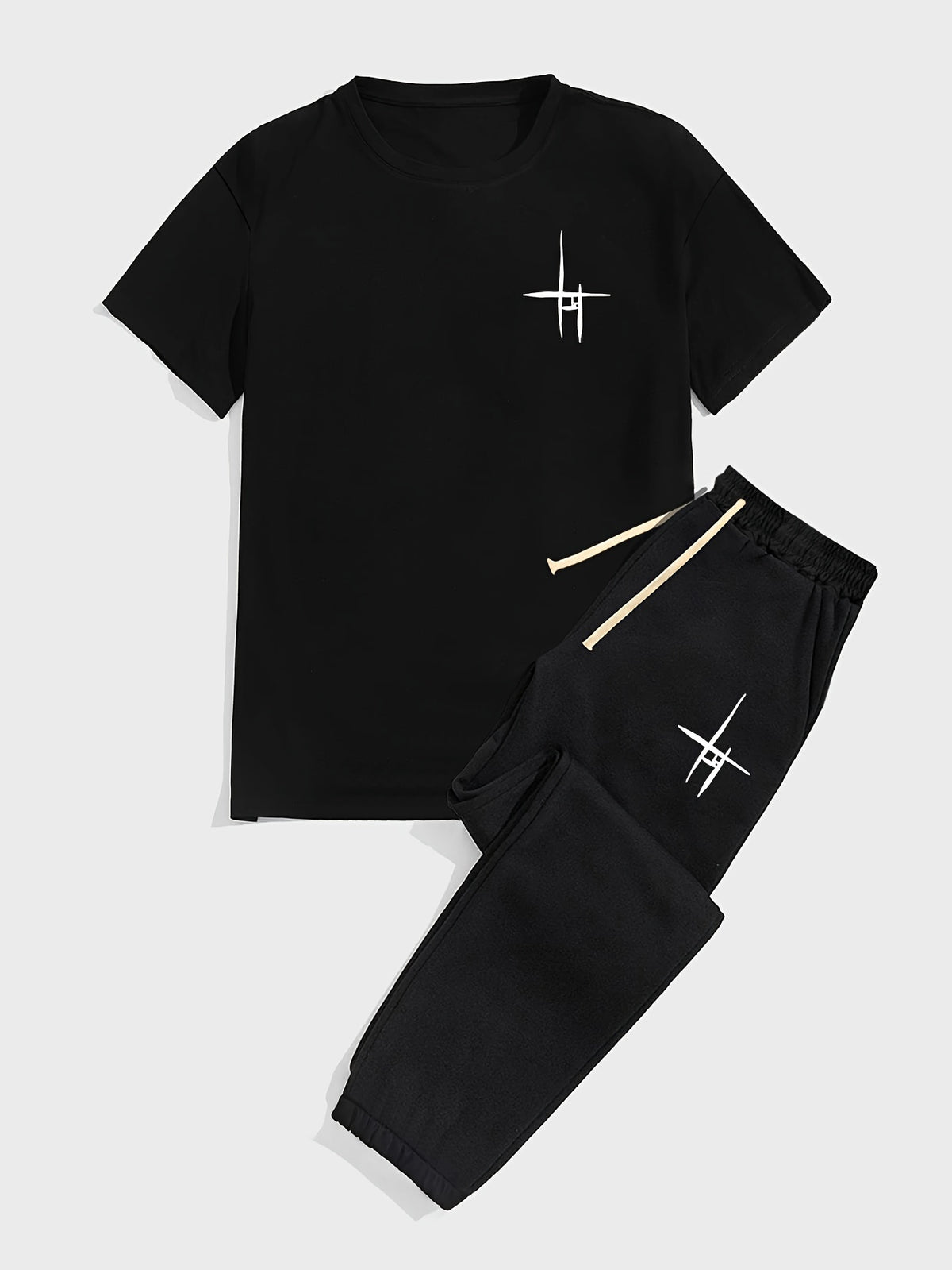 Mens 2 Piece Fashion Outfit Set - Bold Line Pattern Tee & Drawstring Sweatpants - Casual, Comfortable, and Stylish