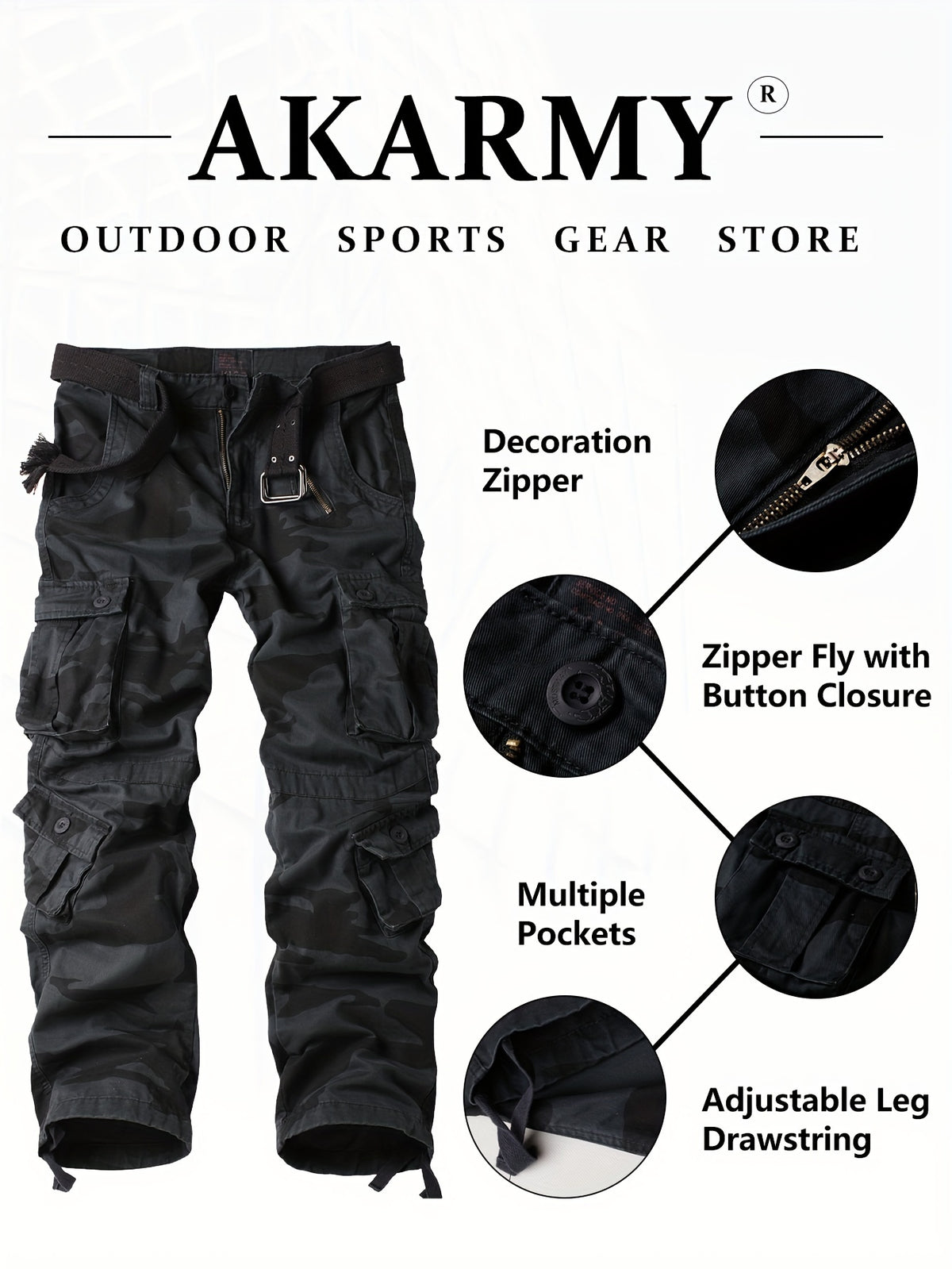 Mens Camo Cargo Pants - Loose Fit, Multi Flap Pockets, Zipper Fly, Cotton Fabric, Machine Washable - Perfect for Outdoor Activities, Weekend Casual, Hiking, Fishing, Angling, Streetwear - Mixed Color / 29