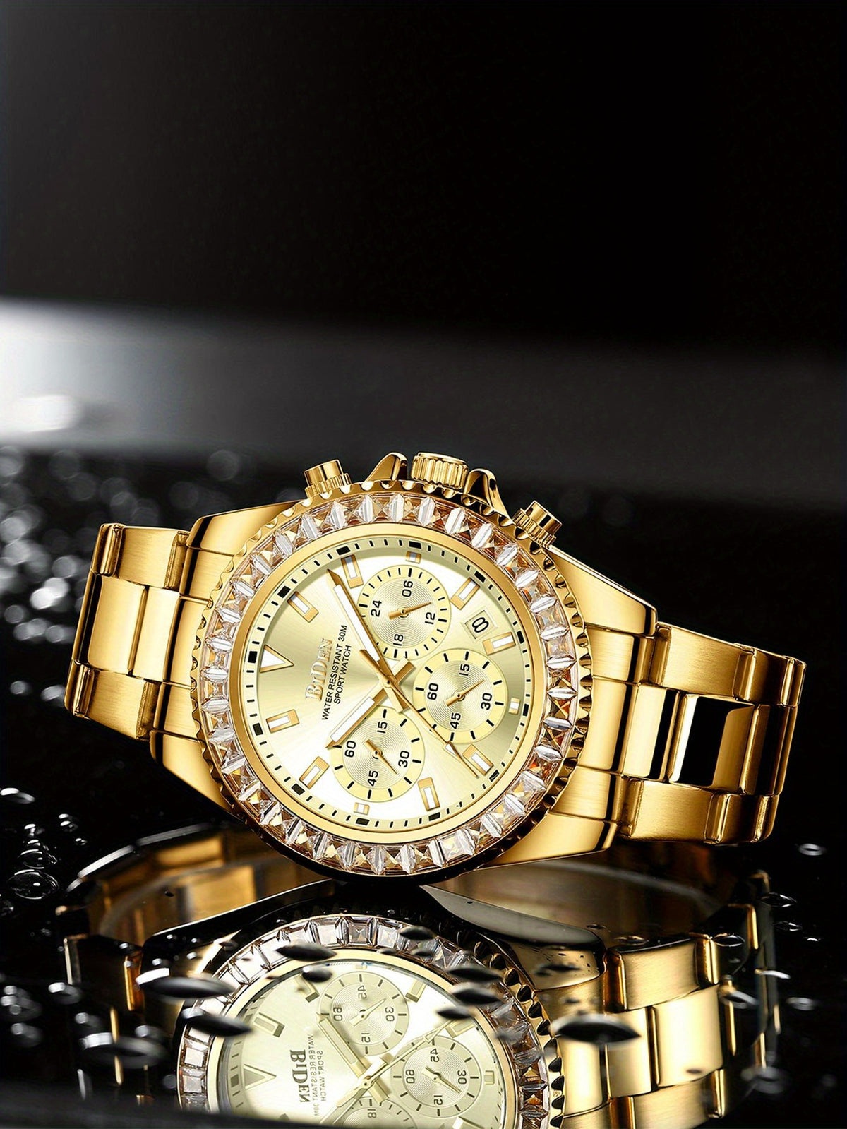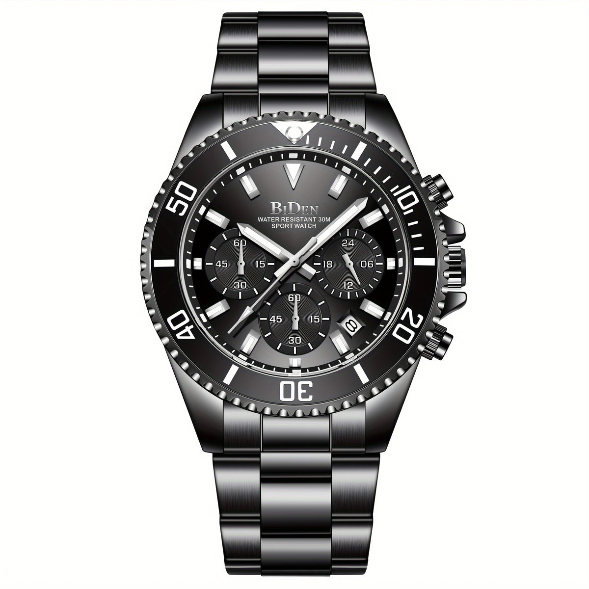 Mens Chronograph Stainless Steel Strap Waterproof Date Quartz Watch, Business Casual Wrist Watches - silvery blue-
