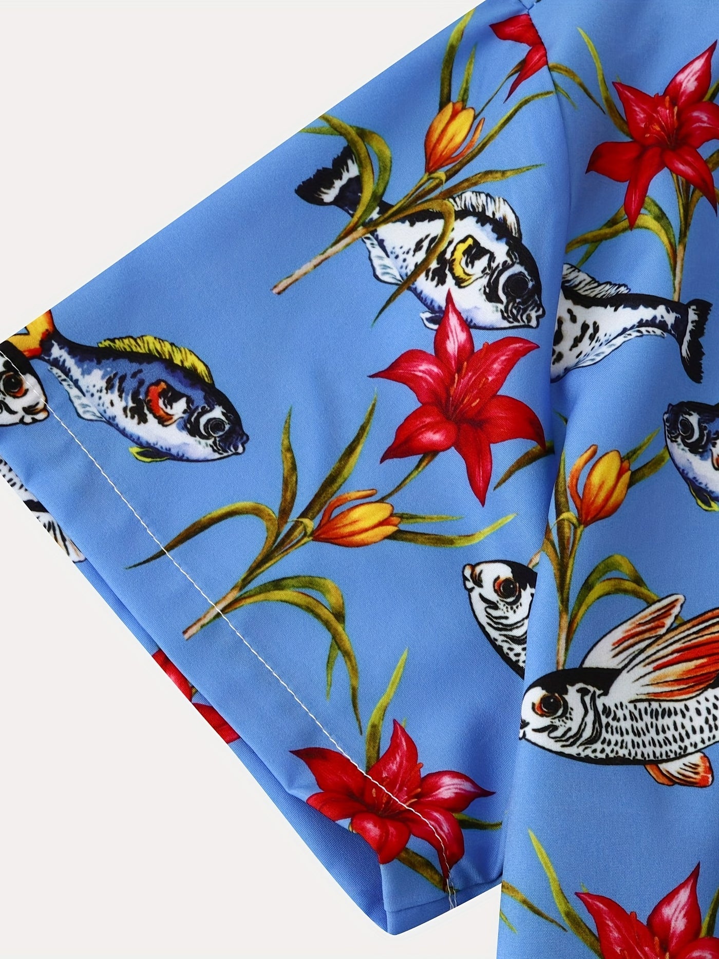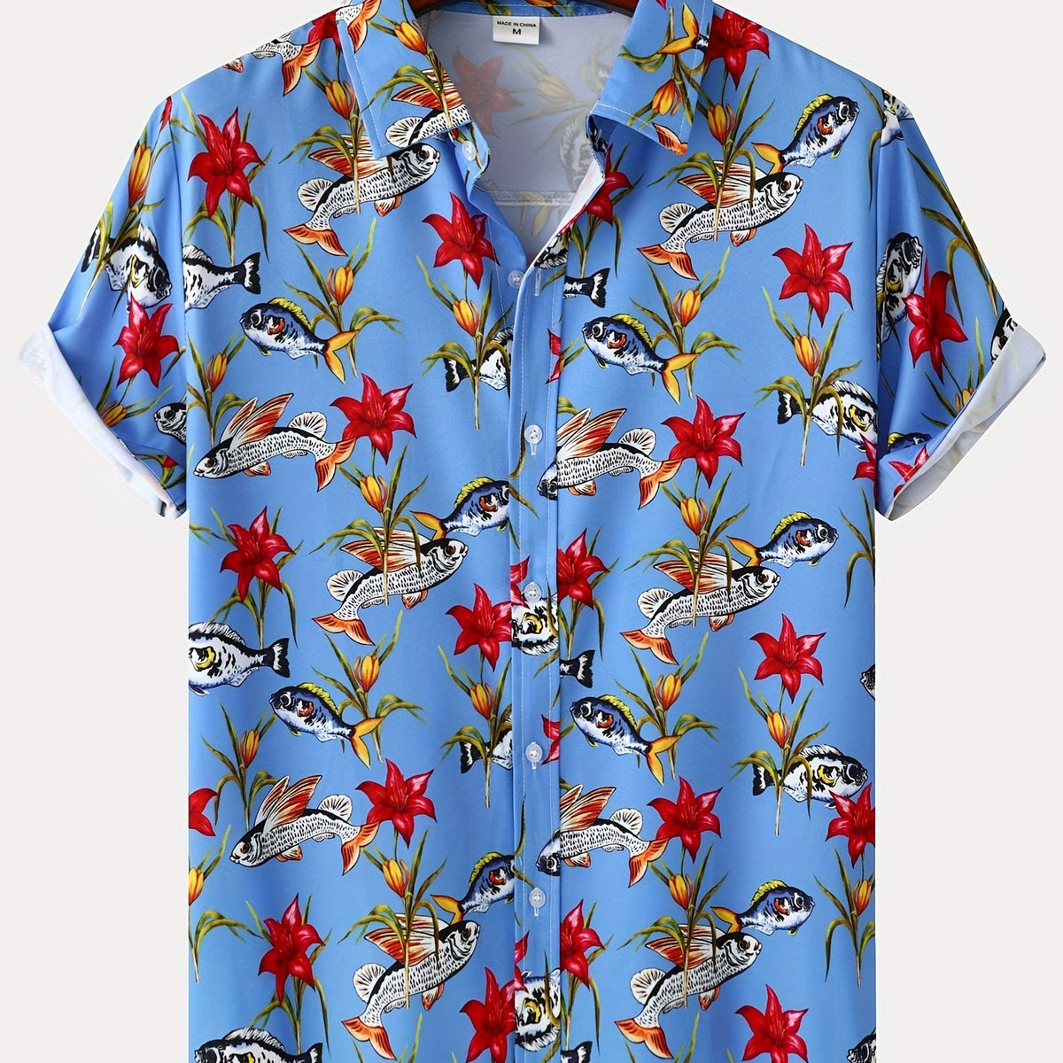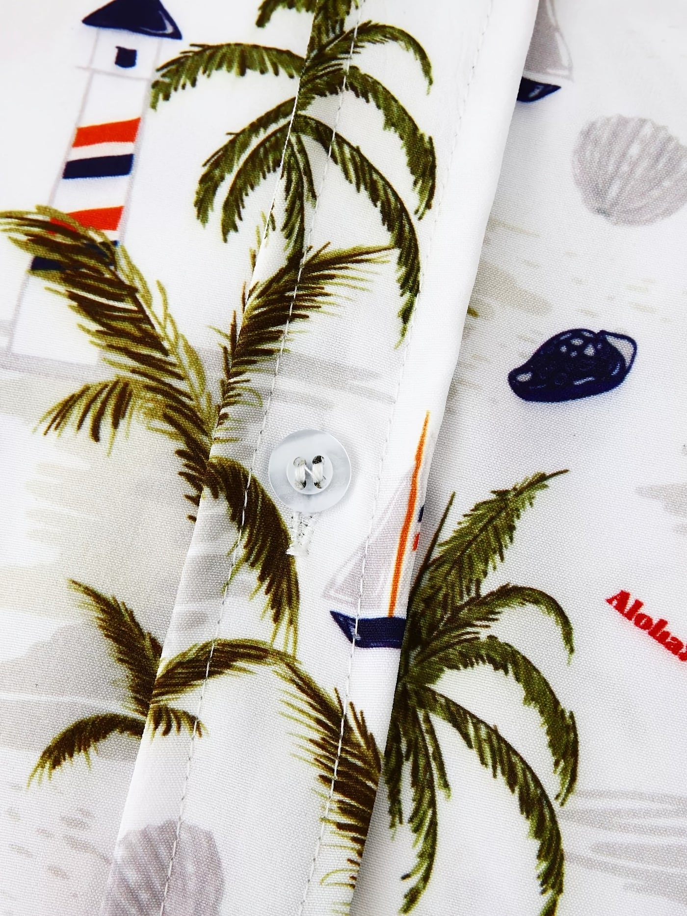 Mens Palm Tree & Lobster Paradise Short Sleeve Hawaiian Shirt - Lightweight, Comfortable, Perfect for Summer Beach Vacations - White / M(38)