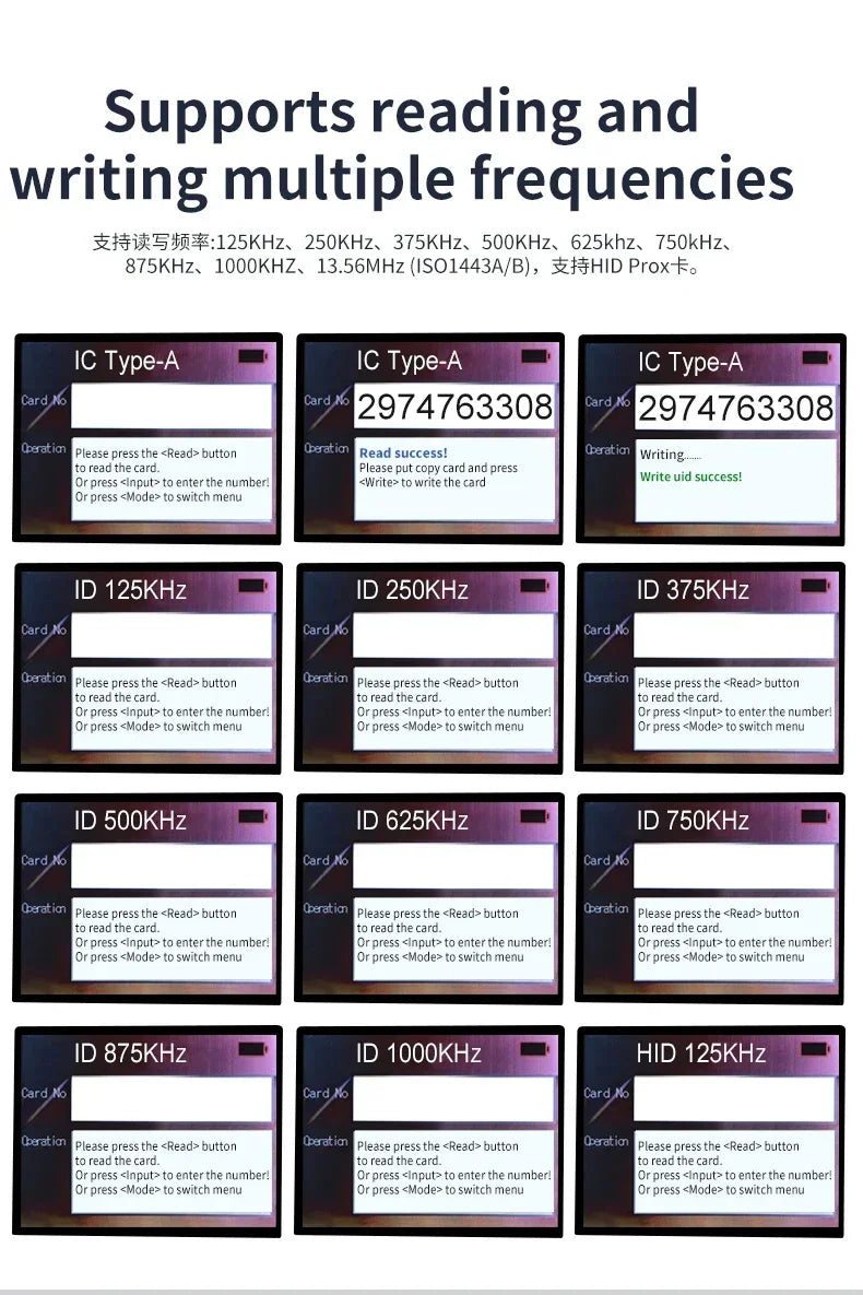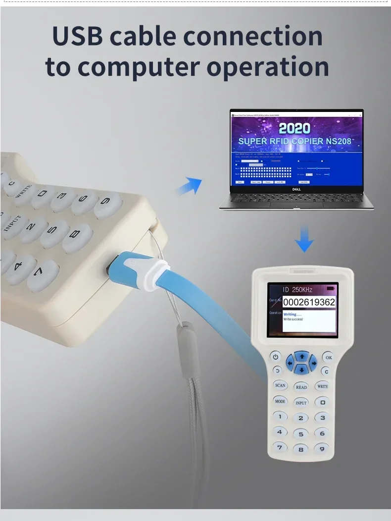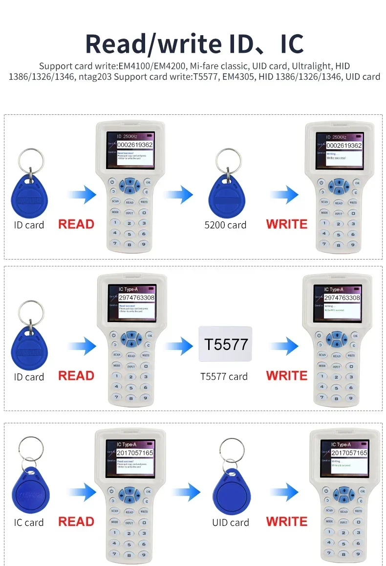 RFID Copier Writer Duplicator 125KHz 13.56MHz USB Programmer NFC Smart 10 Frequency Key Fob Cards Reader UID Decoder T5577 Hotel